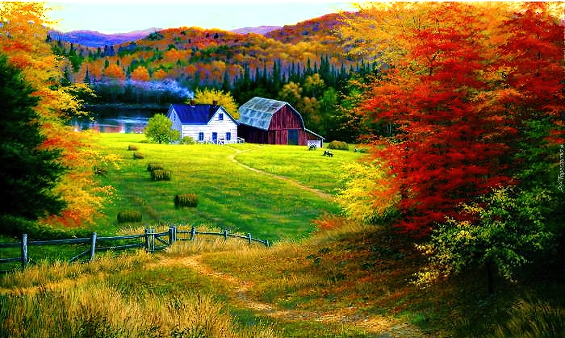 Edytor tapety: Pole, Łąka, Dom, Jesień