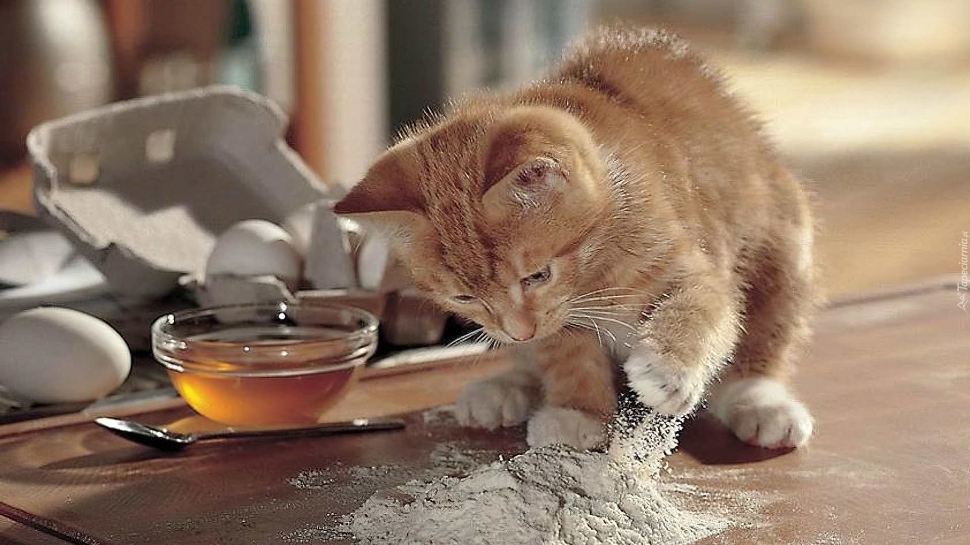 Edytor tapety: Mały, Rudy, Kotek, Gotuje