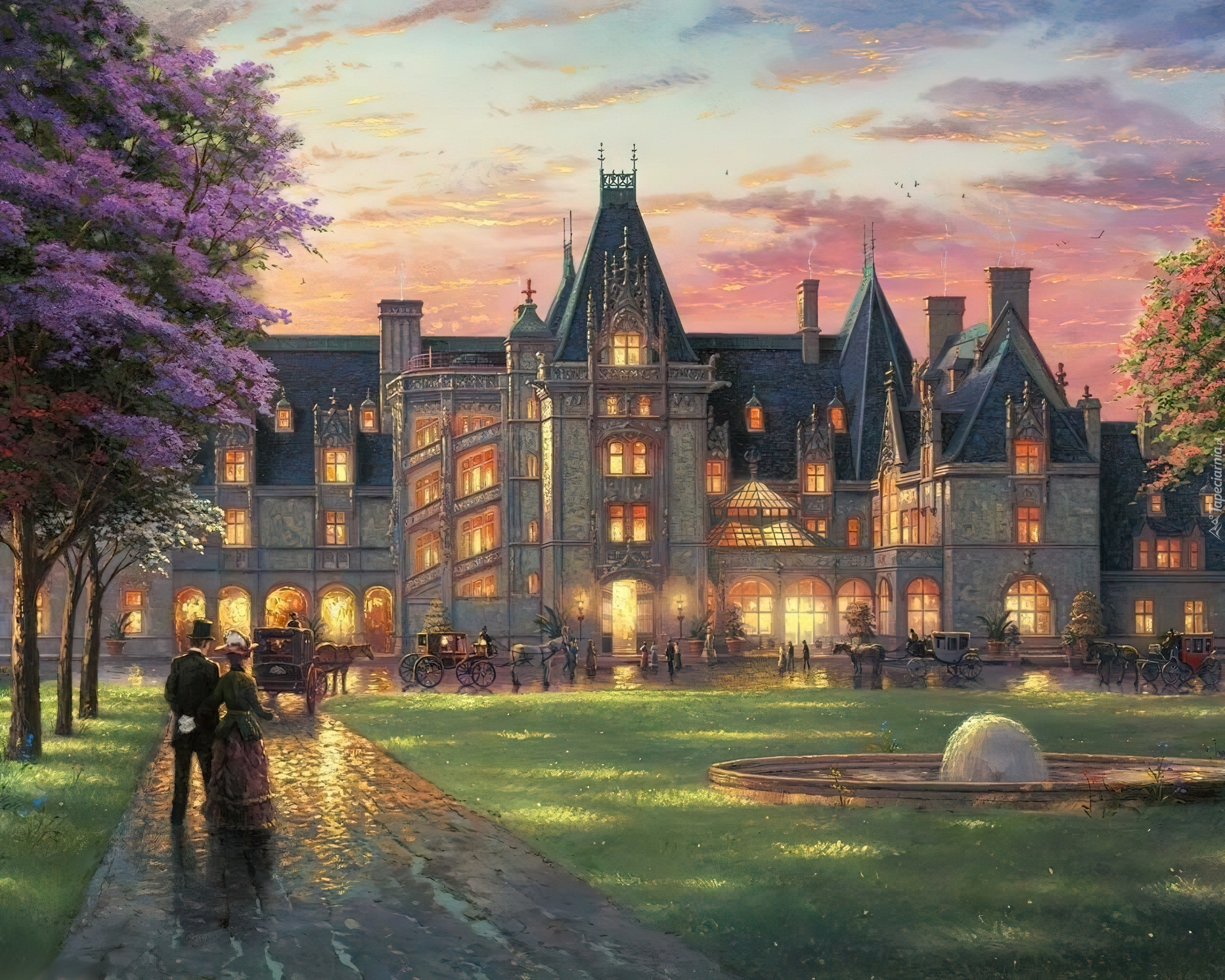 Edytor tapety: Pałac, Trawnik, Spacerująca, Para