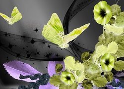 Edytor tapety: Granatowe, Kwiaty, Motyle, Art