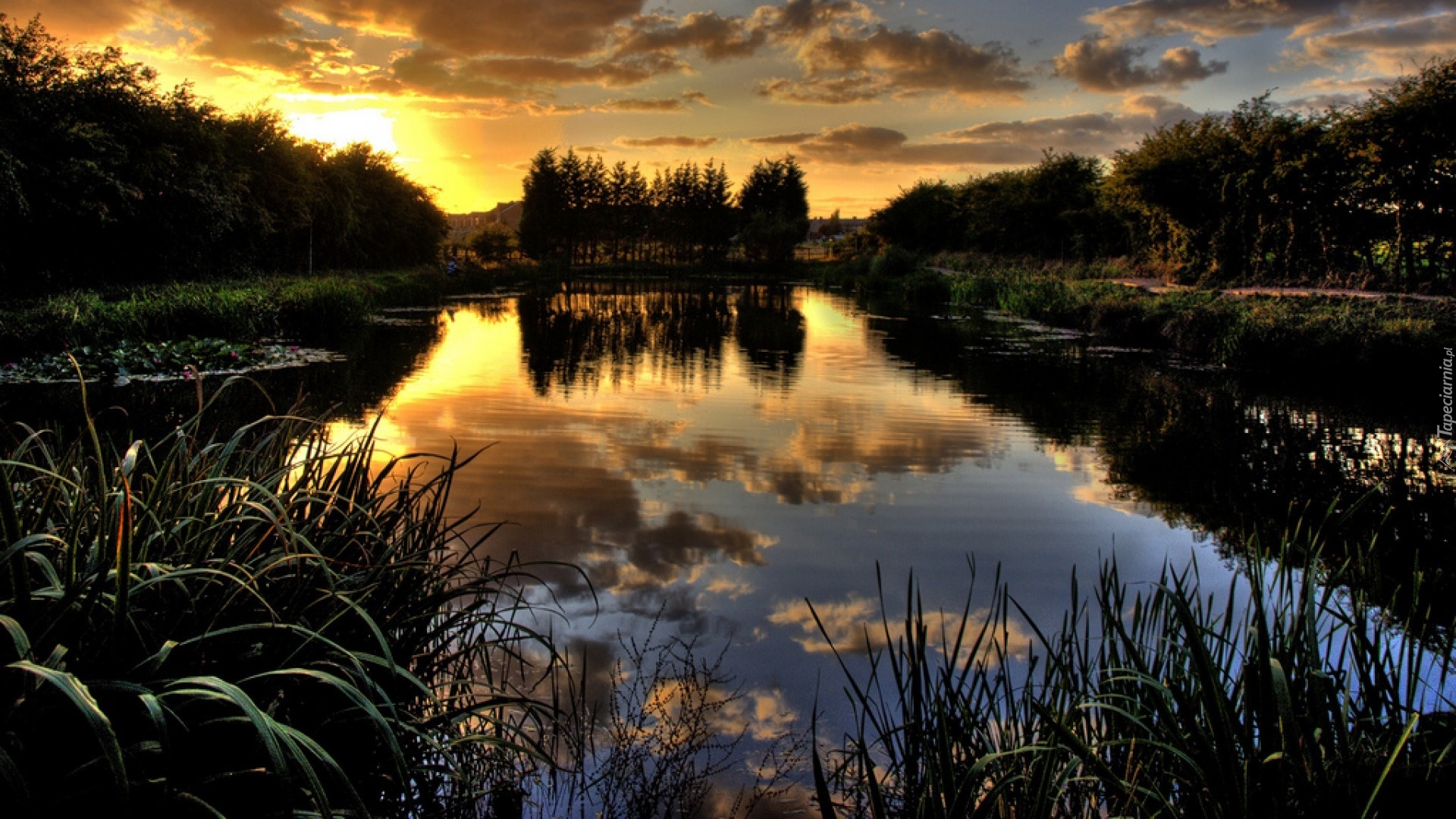 Edytor tapety: Las, Jezioro, Zachód, Słońca