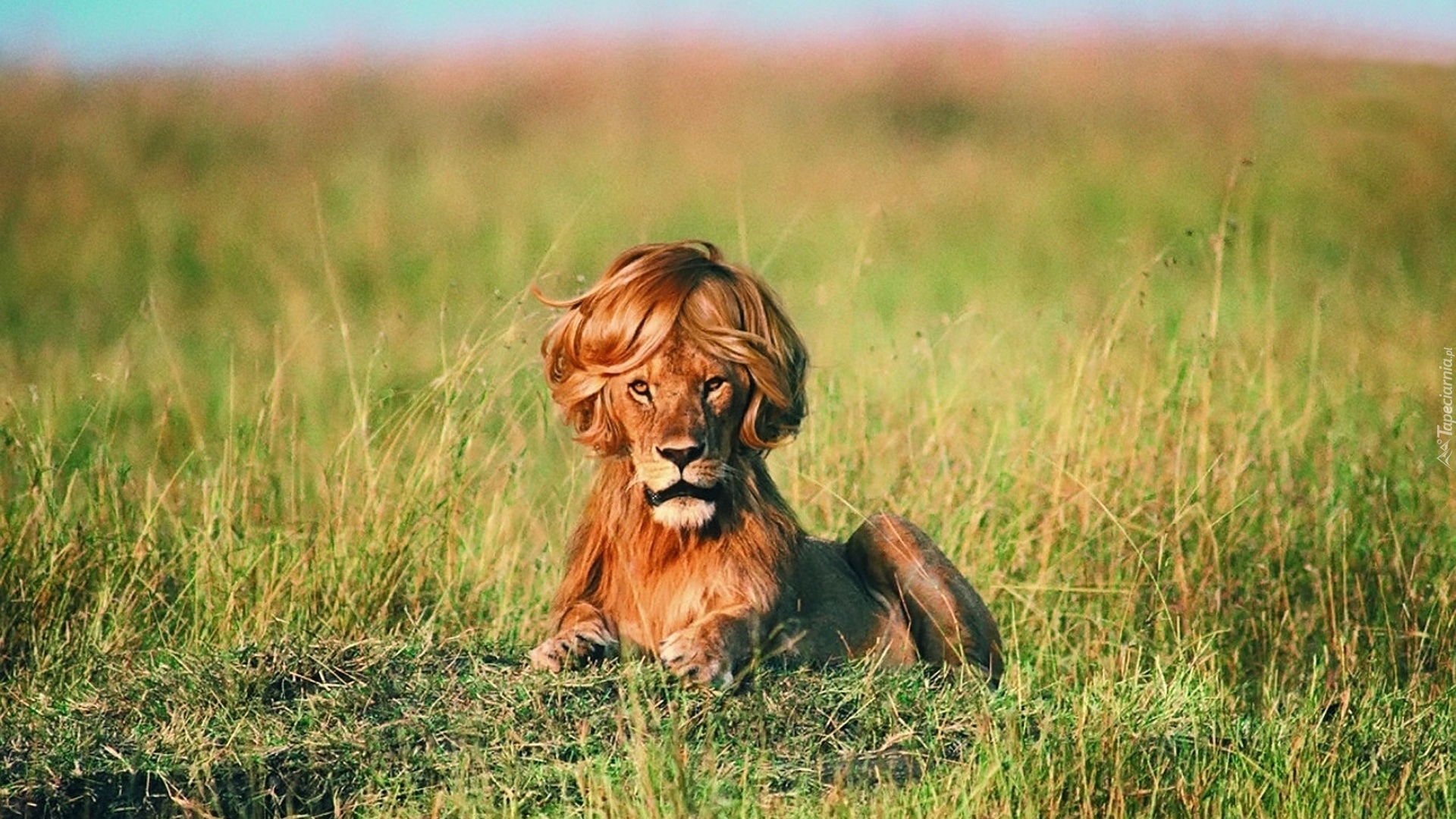Edytor tapety: Lew, Peruka, Trawa