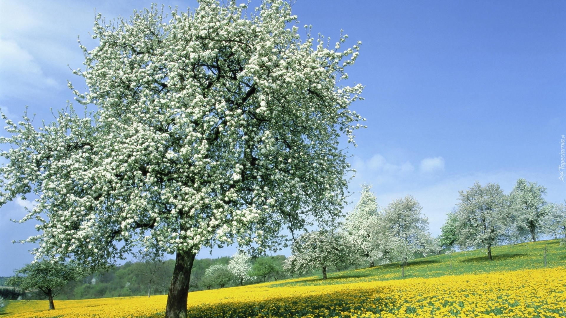 Edytor tapety: Wiosna, Łąka, Kwitnące, Drzewa