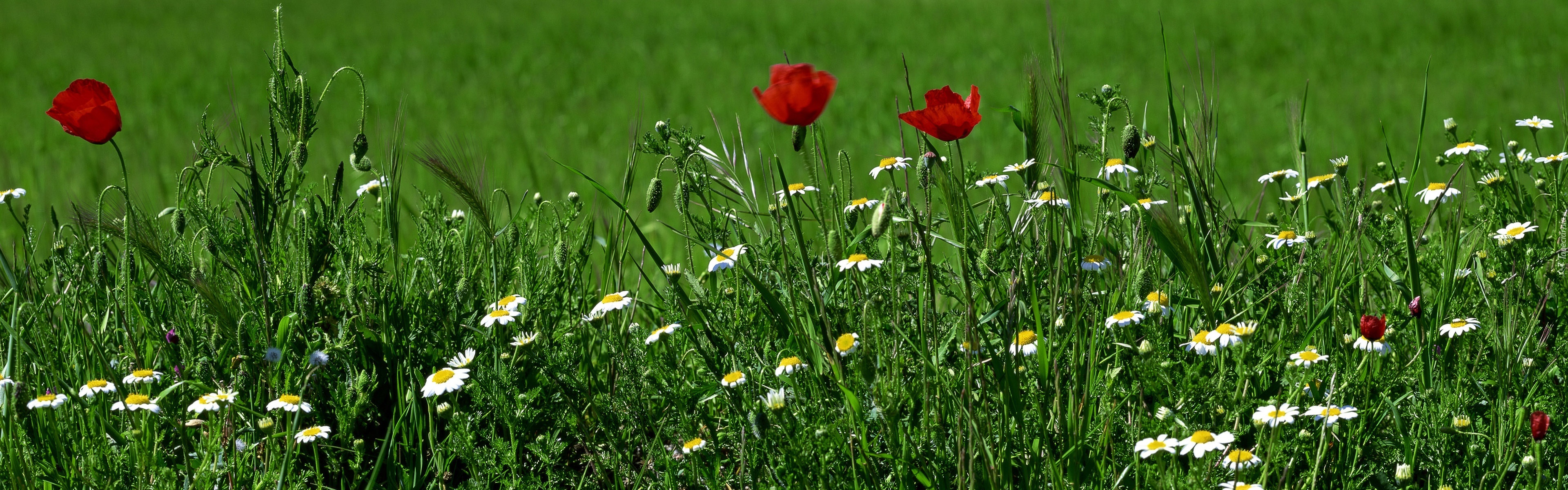 Edytor tapety: Trawa, Rumianek, Maki