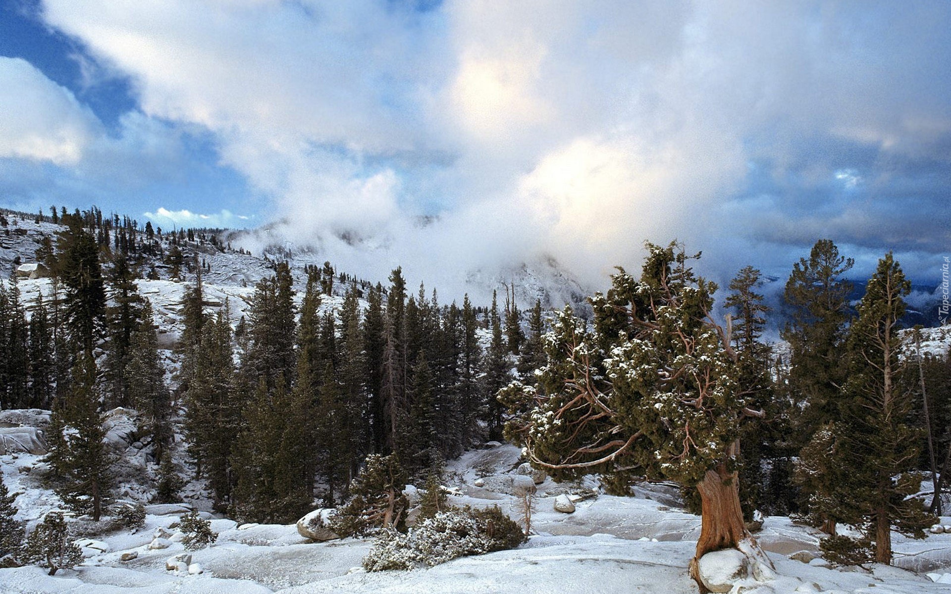 Edytor tapety: Góry, Lasy, Chmury, Zima