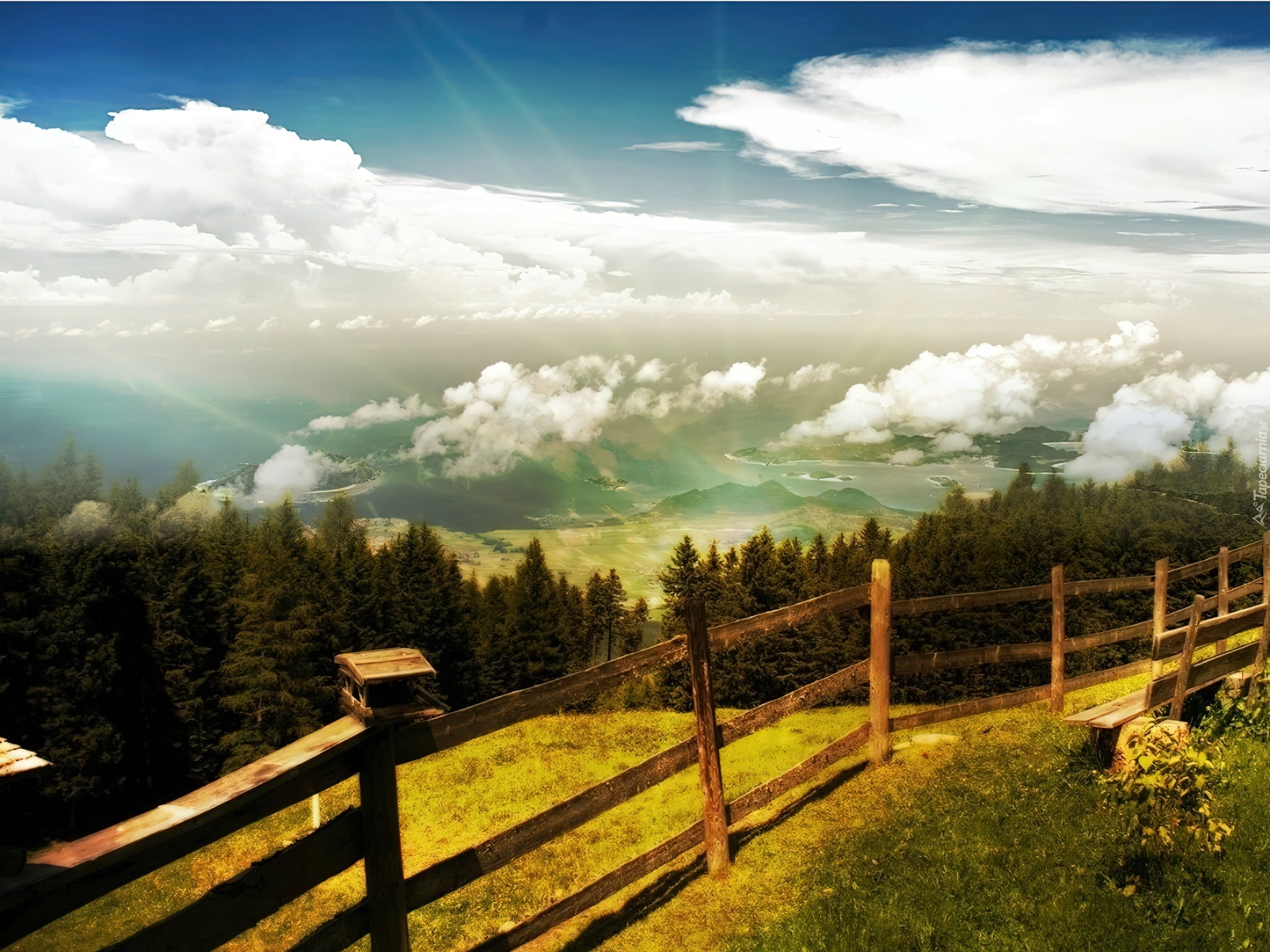 Edytor tapety: Góry, Lasy, Morze, Chmury