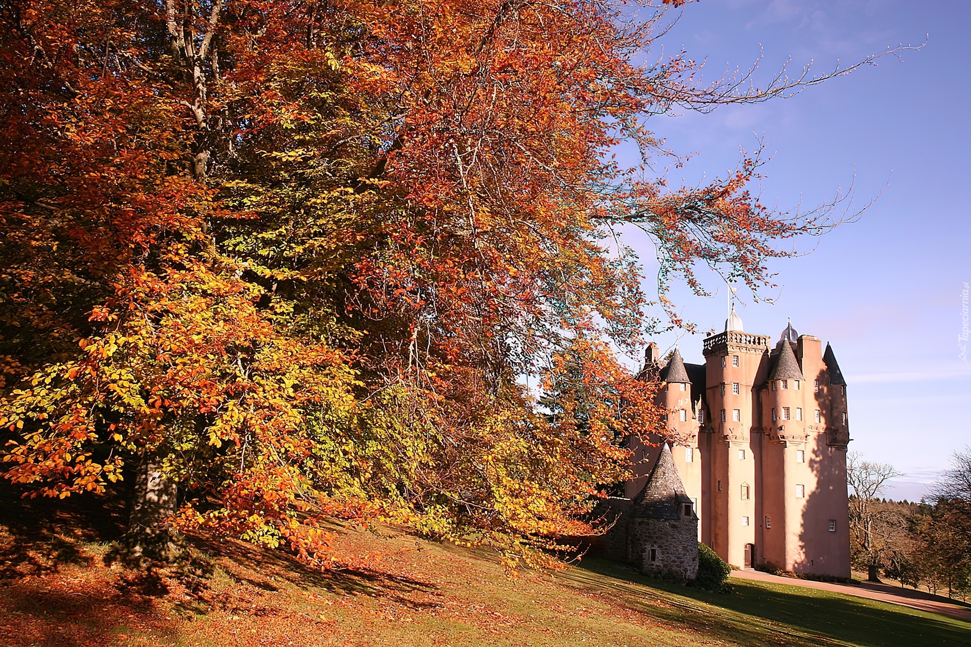 Edytor tapety: Jesień, Drzewo, Zamek, Craigievar, Szkocja