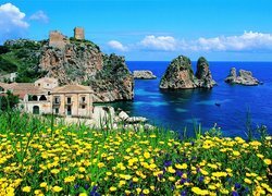 Edytor tapety: Morze, Skały, Łąka, Domy, Sycylia