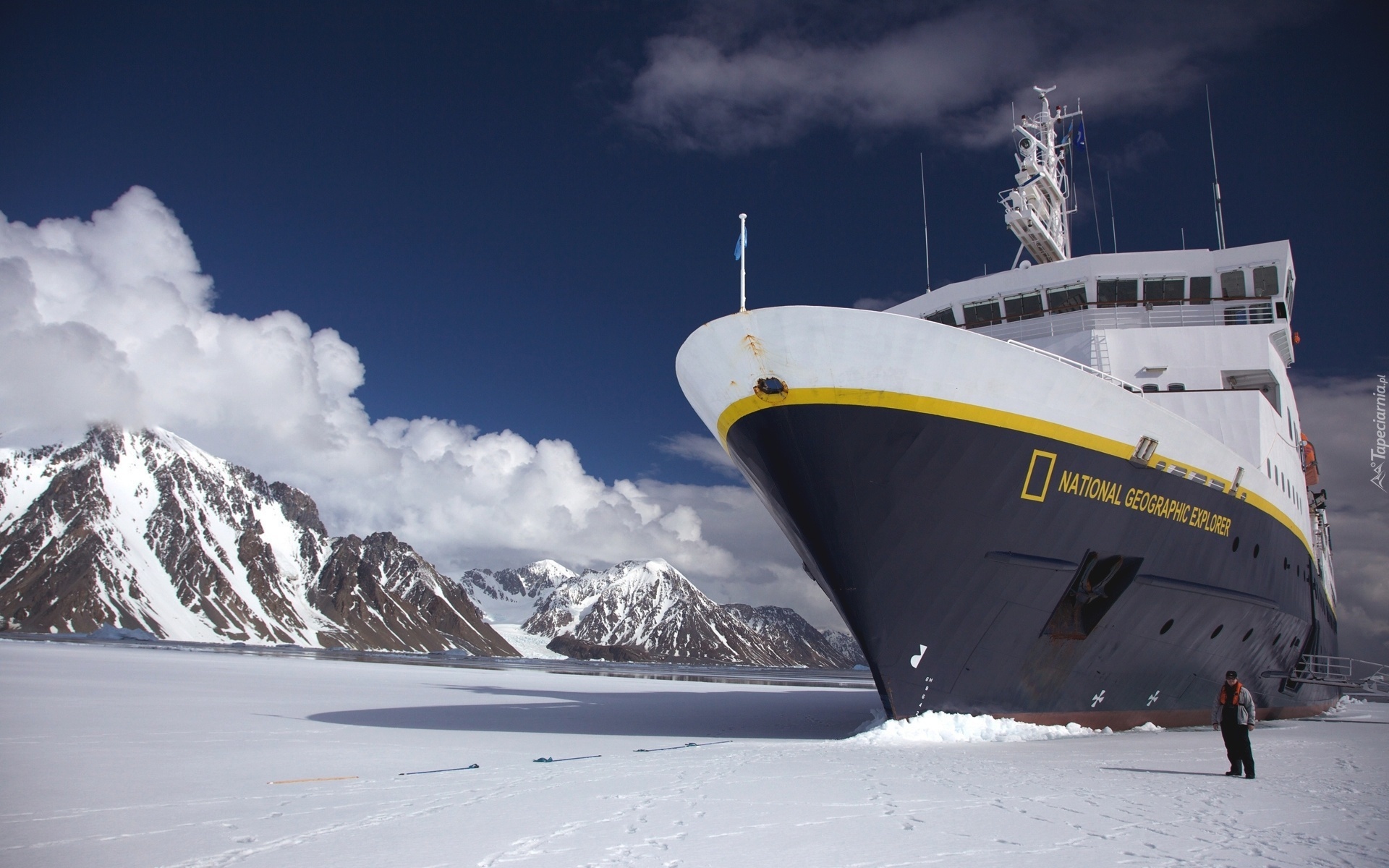 Edytor tapety: Statek, Morze, Góry, Chmury