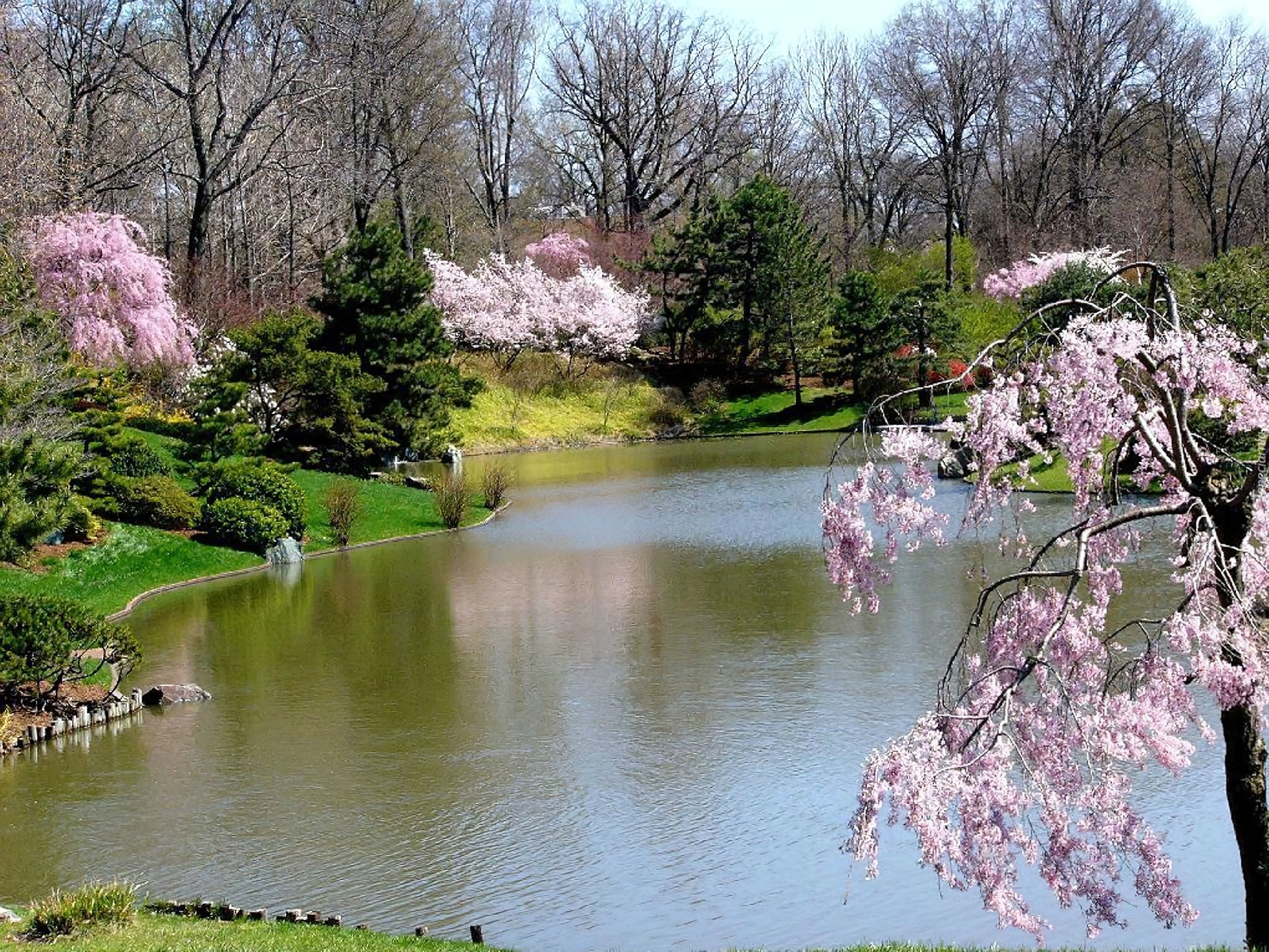 Edytor tapety: Park, Rzeka, Kwitnące, Drzewa, Wiosna