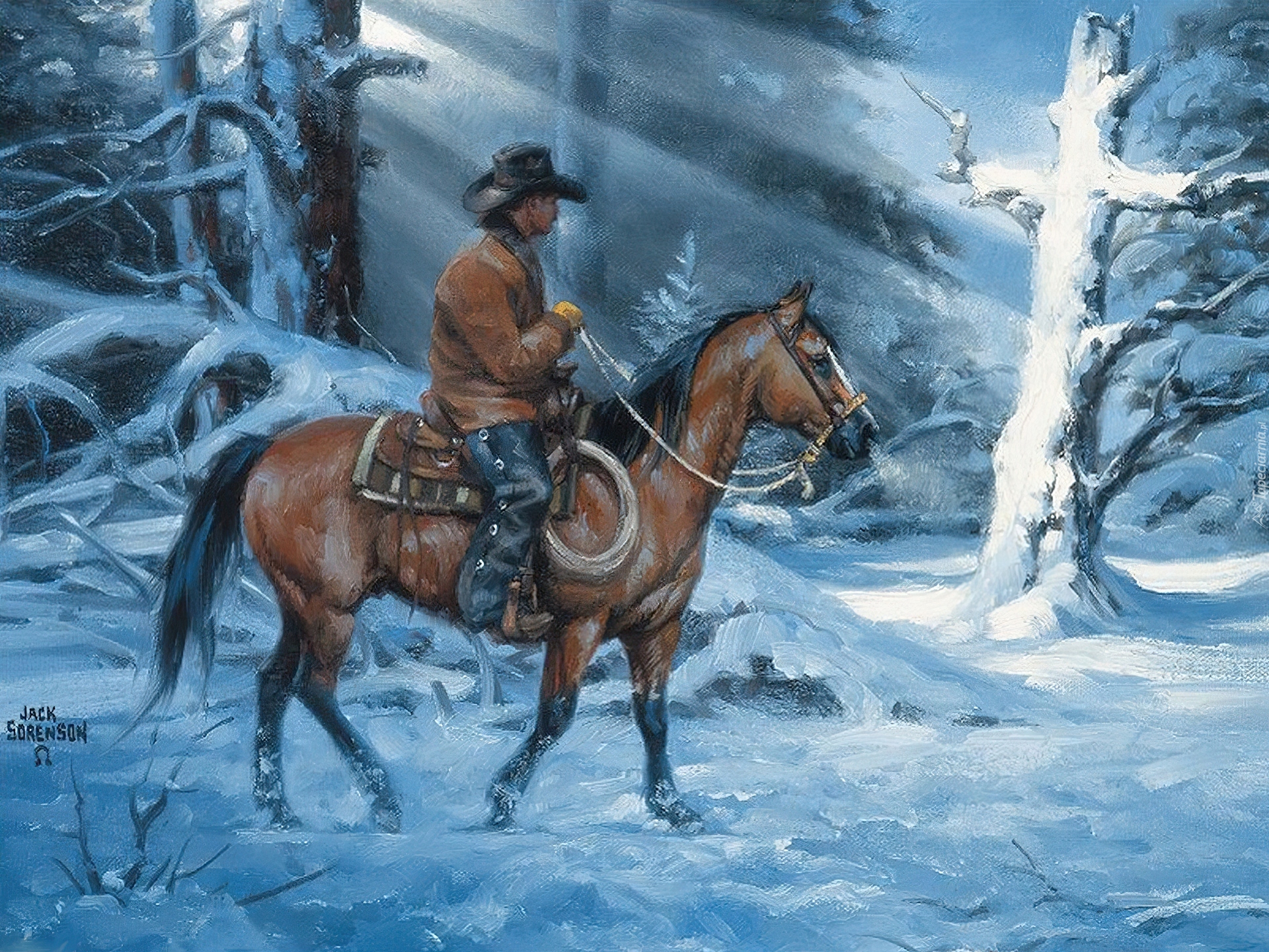 Edytor tapety: Zima, Koń, Kowboj