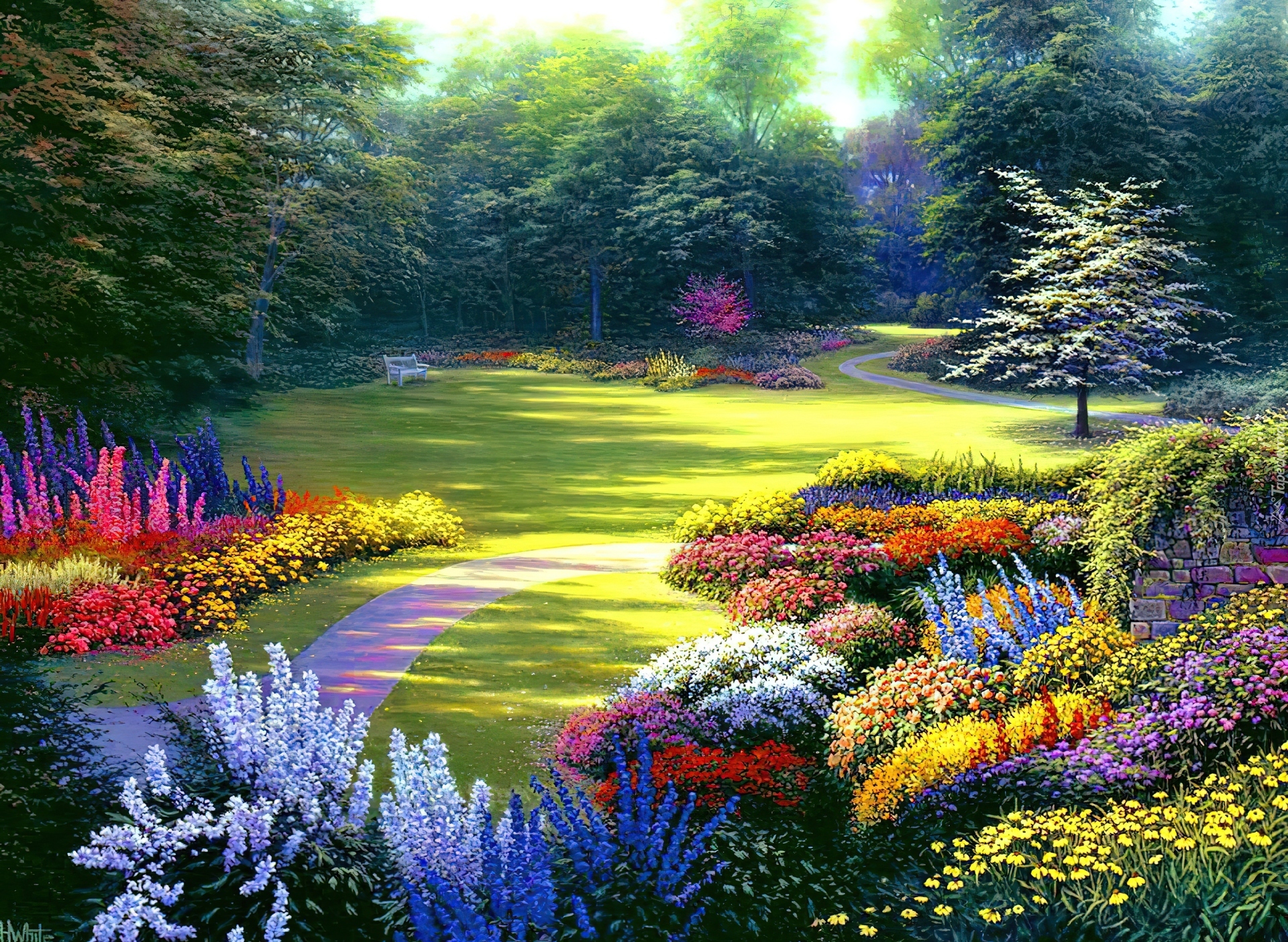 Edytor tapety: Ogród, Kolorowe, Kwiaty, Alejka