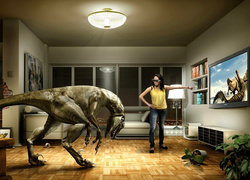 Edytor tapety: Kobieta, Dinozaur, Telewizor