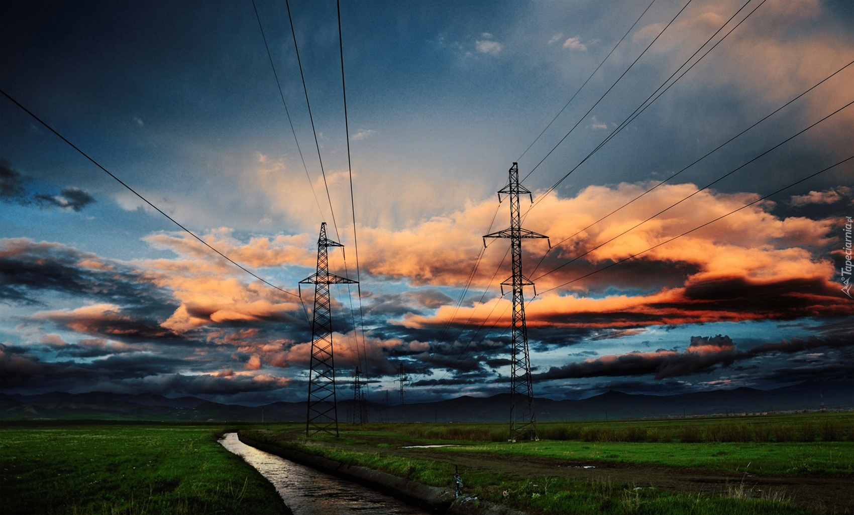 Edytor tapety: Chmury, Rzeczka, Słupy