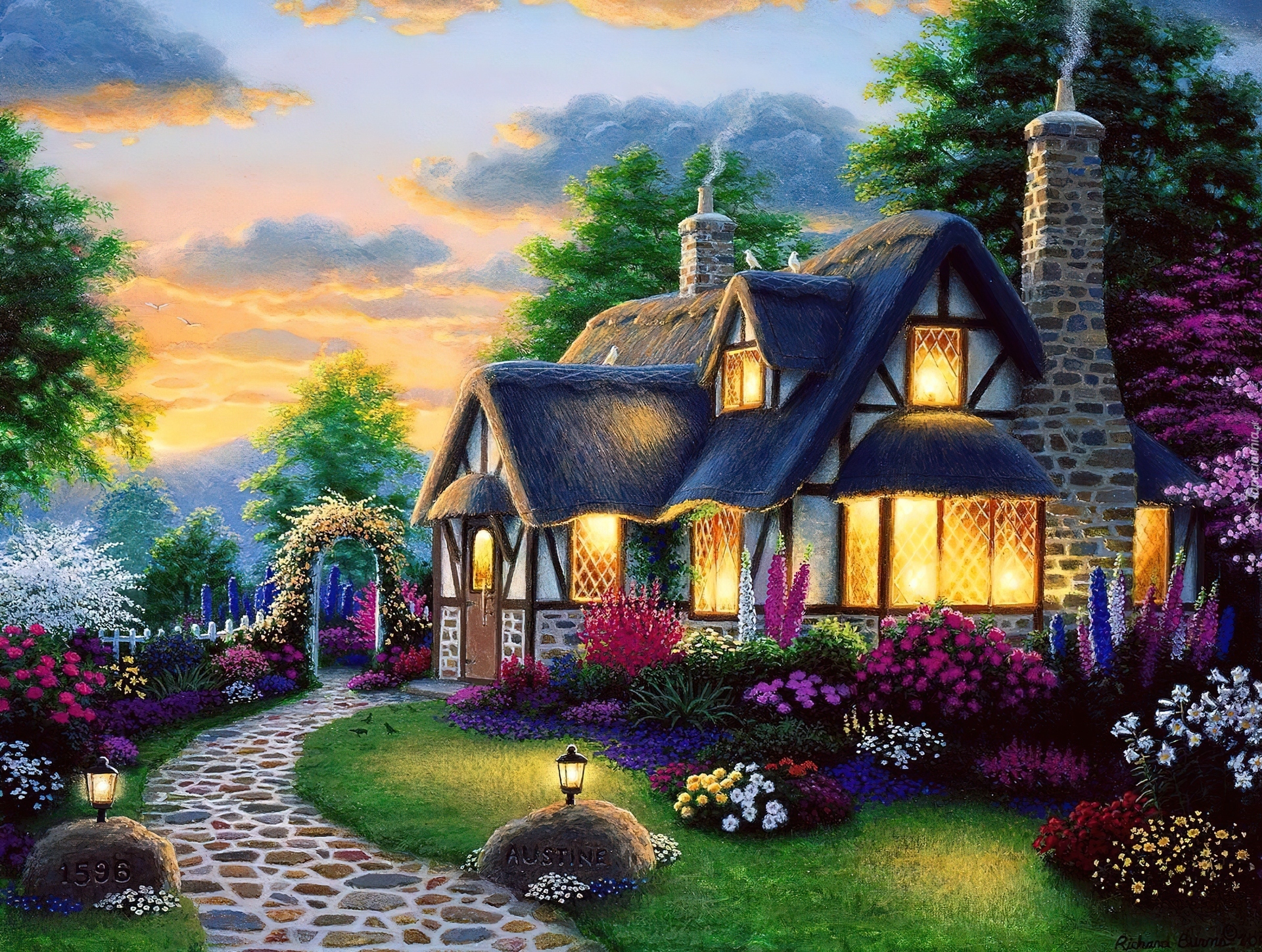 Edytor tapety: Dom, Ogród, Kwiaty, Alejka
