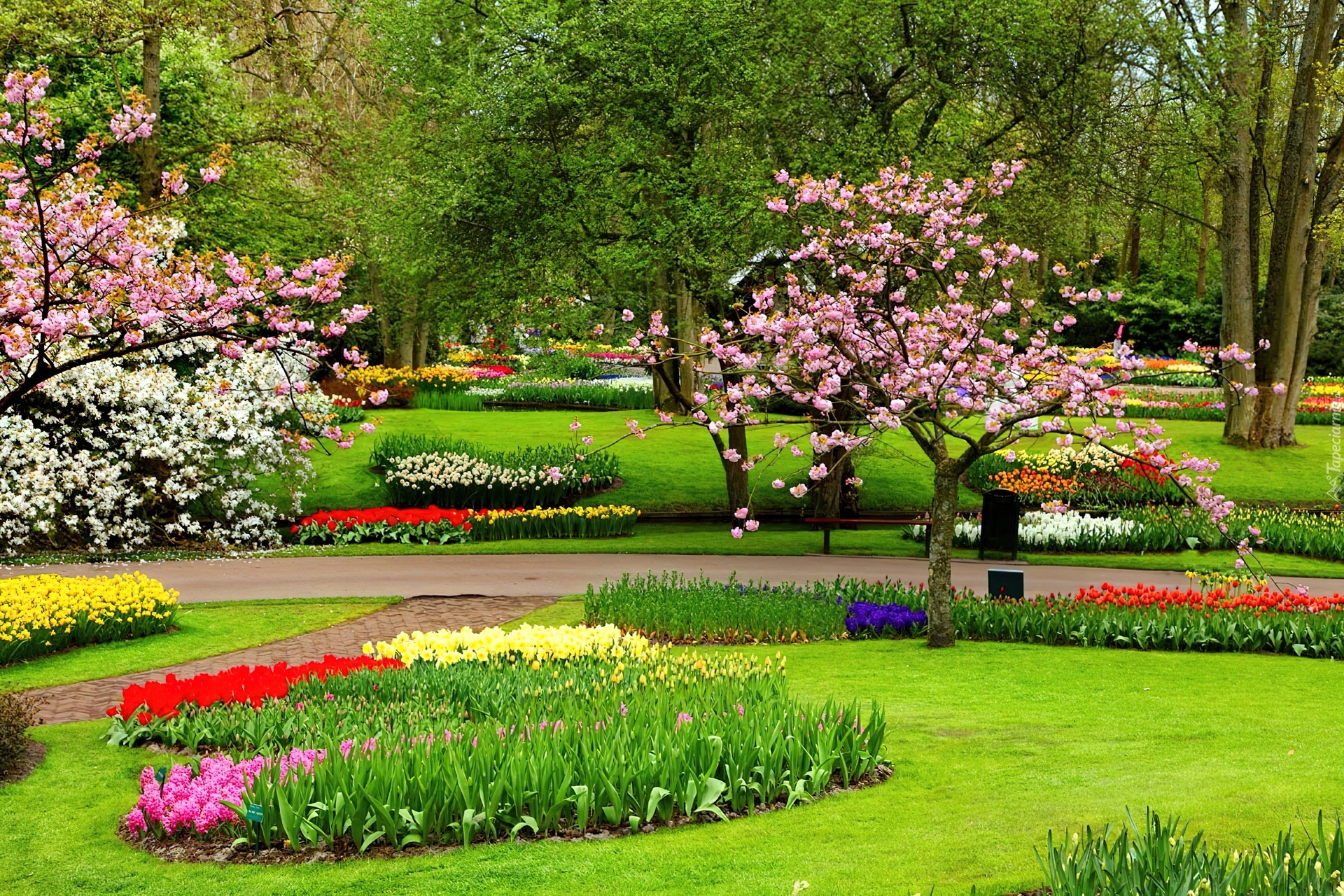 Edytor tapety: Park, Kwiaty, Klomby, Drzewa