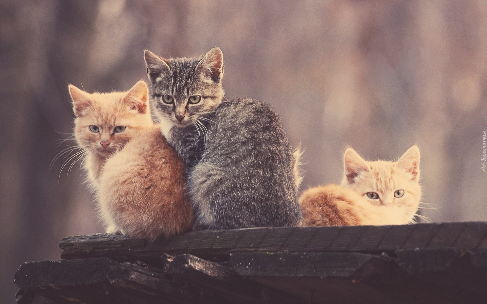 Edytor tapety: Trzy, Kotki, Ławka