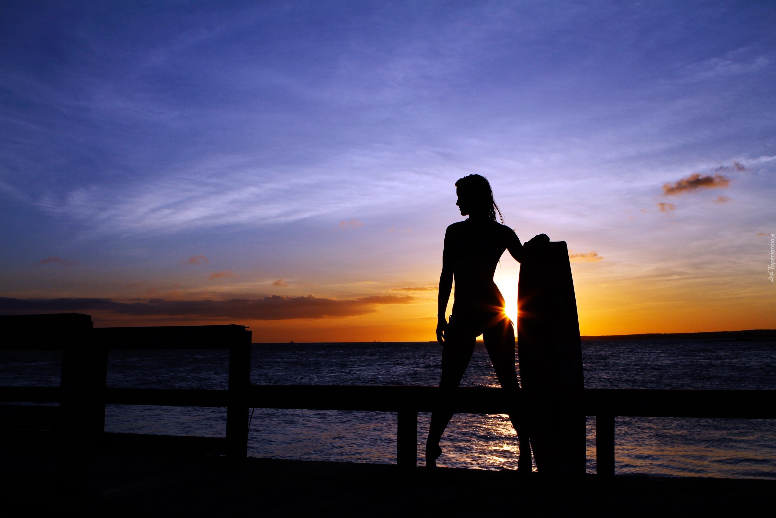 Edytor tapety: Kobieta, Morze, Zachód, Słońca