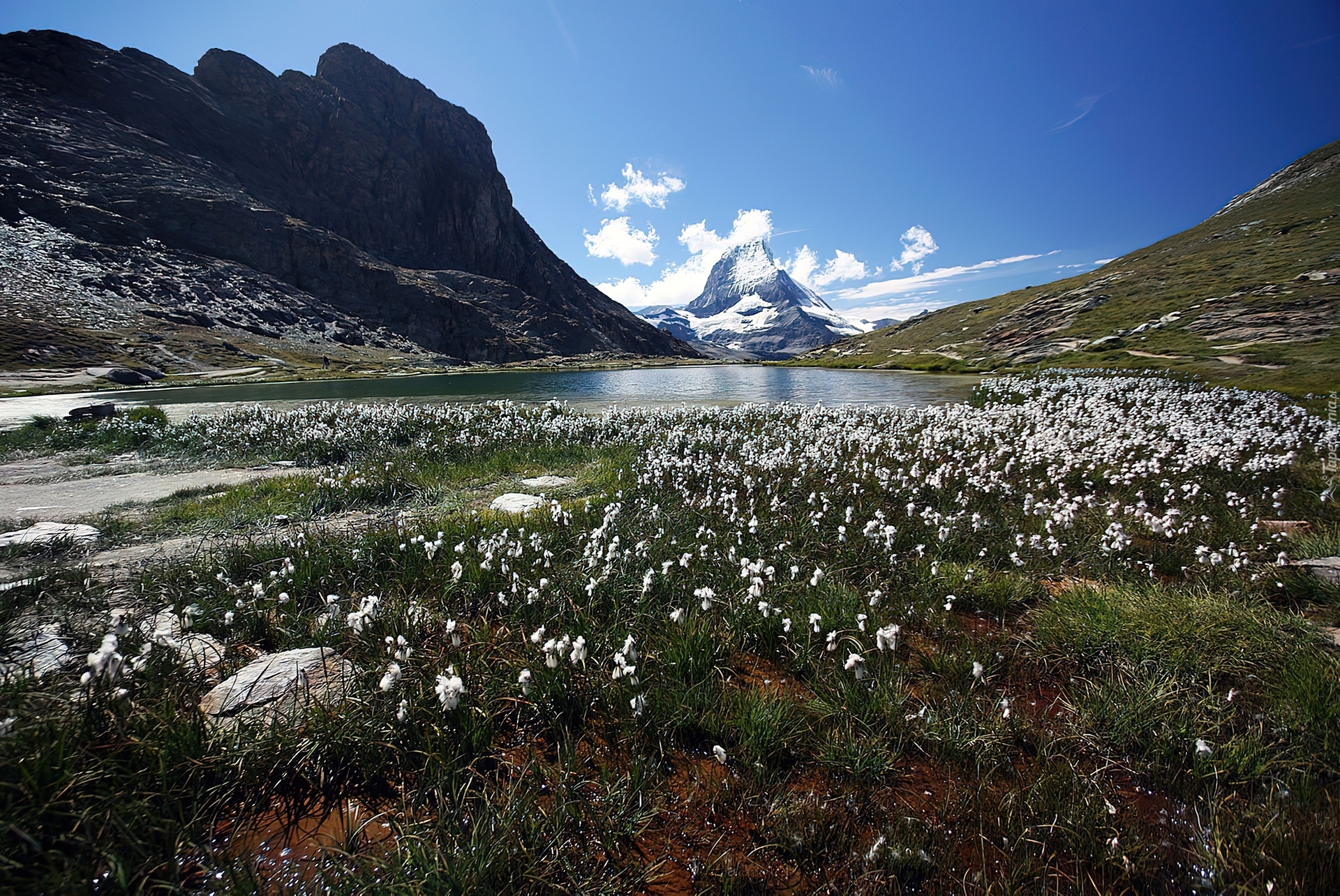 Edytor tapety: Łąka, Jeziorko, Góry, Matterhorn, Szwajcaria