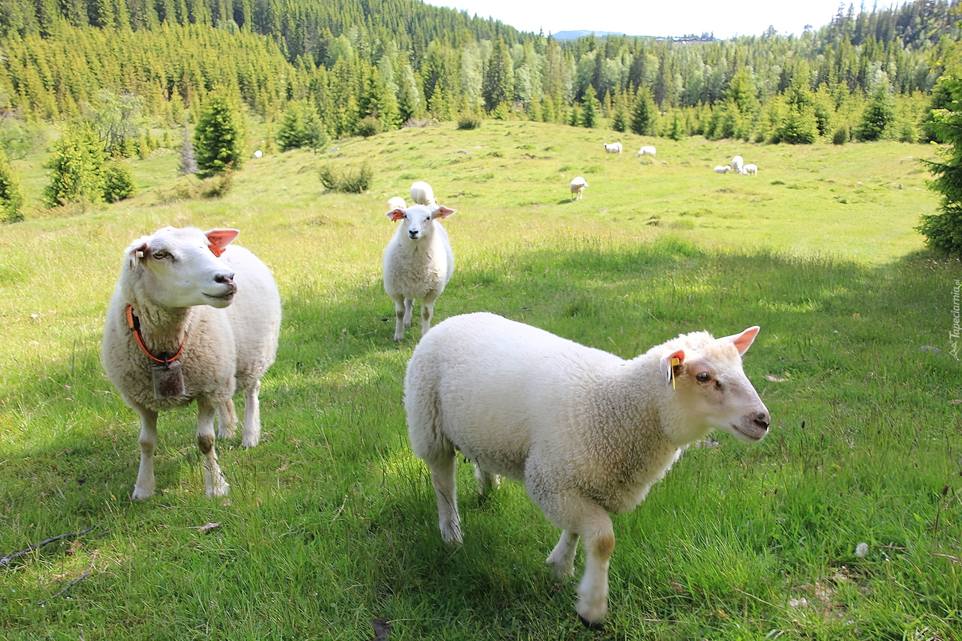 Edytor tapety: Owieczki, Łąka, Las