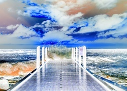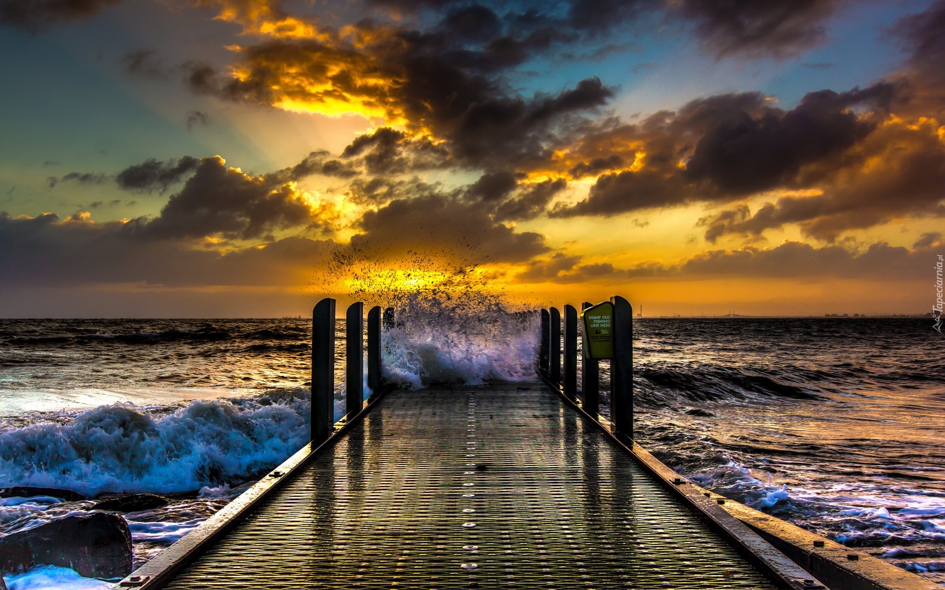 Edytor tapety: Morze, Fale, Chmury, Zachód, Molo