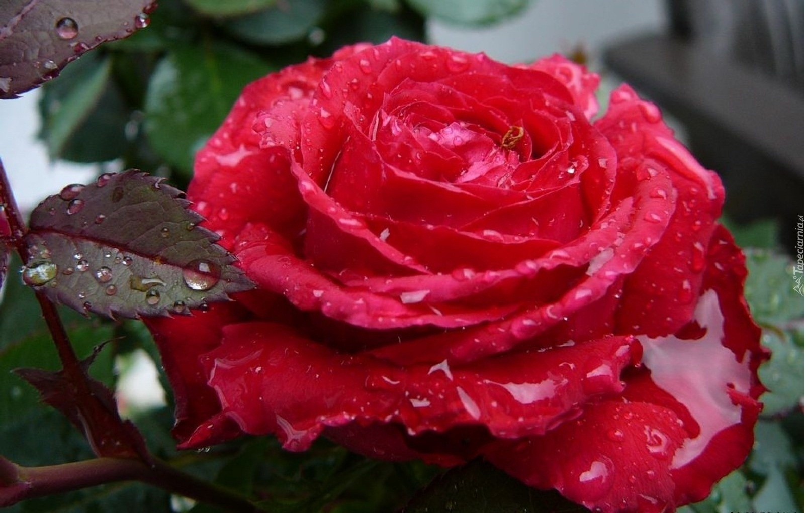 Edytor tapety: Róża, Czerwona, Krople
