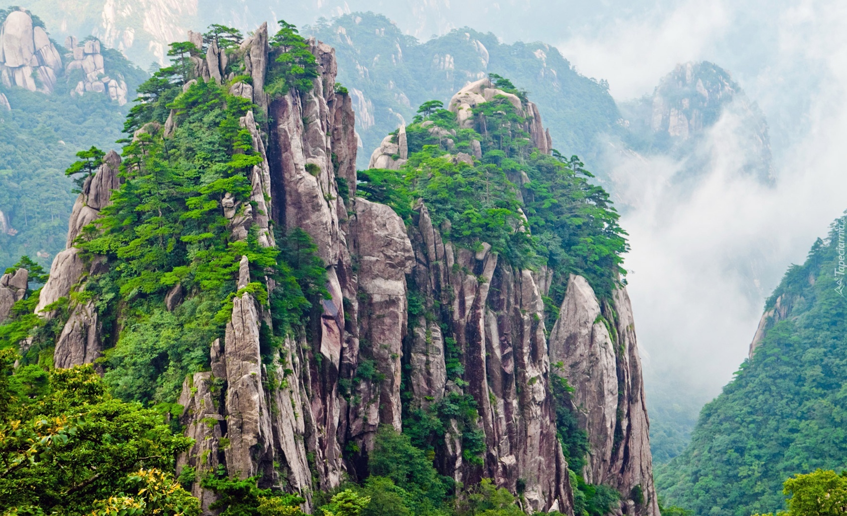 Edytor tapety: Góry, Szczyty, Roślinność, Mgła