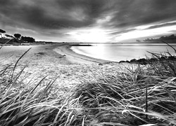 Edytor tapety: Zachód, Jezioro, Plaża, Trawa
