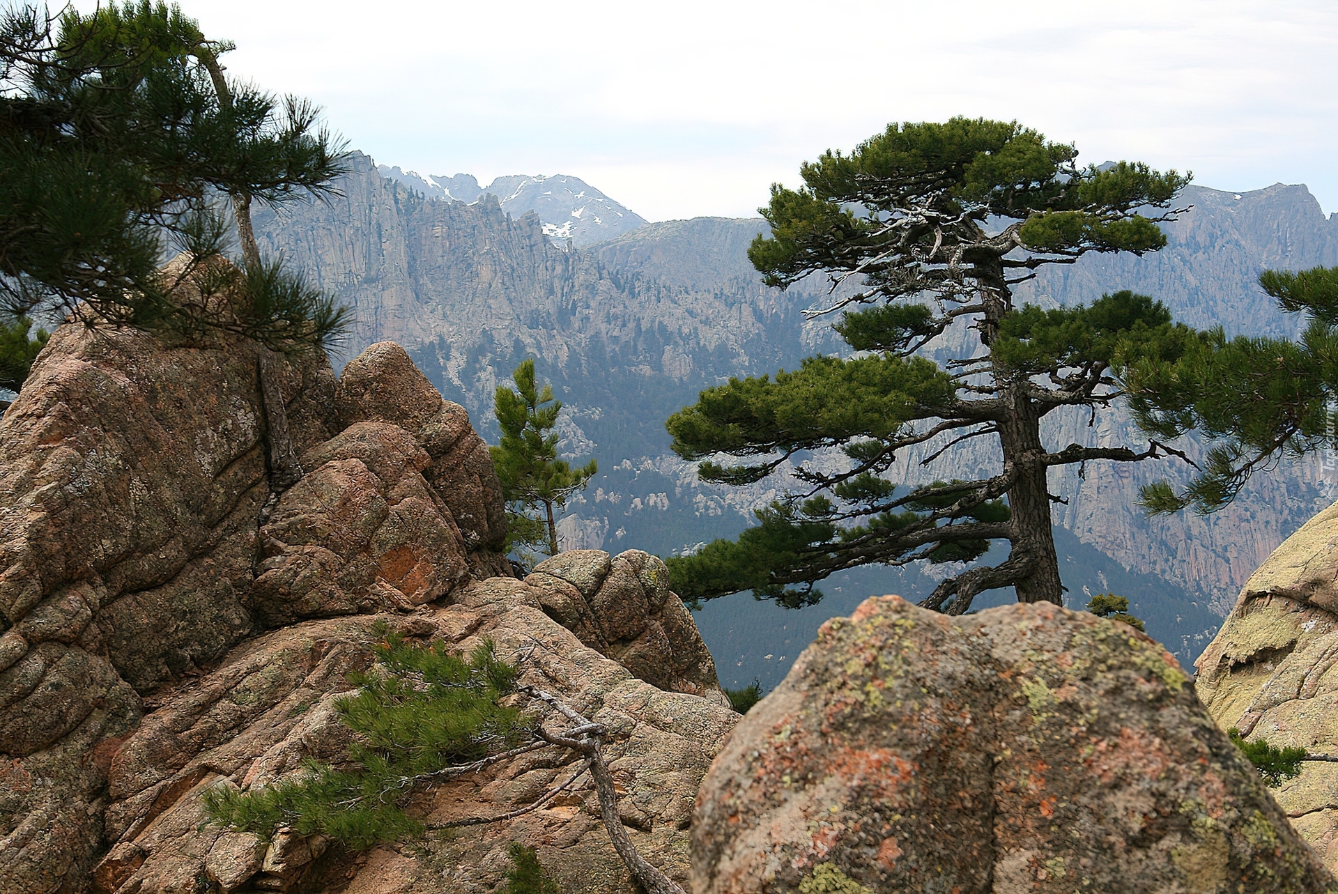 Edytor tapety: Sosny, Skały, Góry