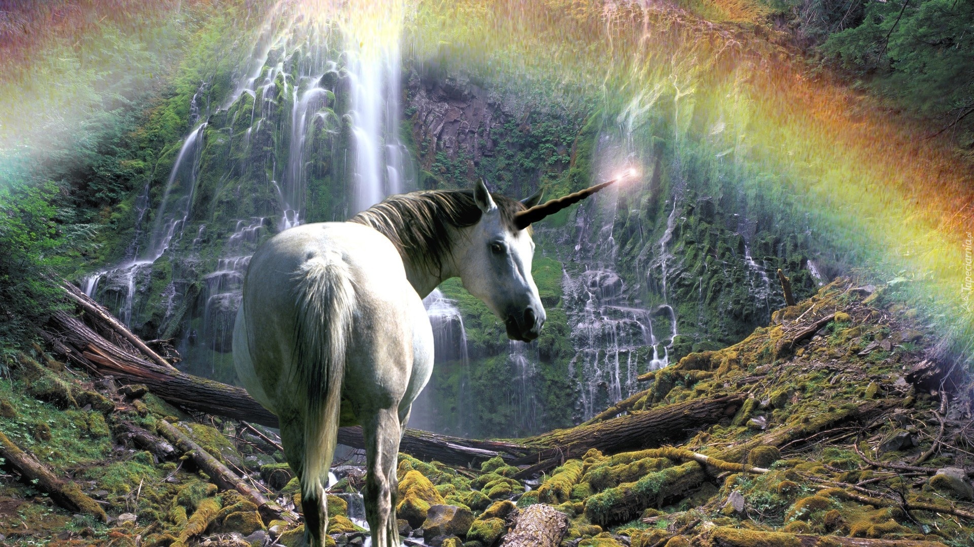 Edytor tapety: Jednorożec, Wodospad, Tęcza
