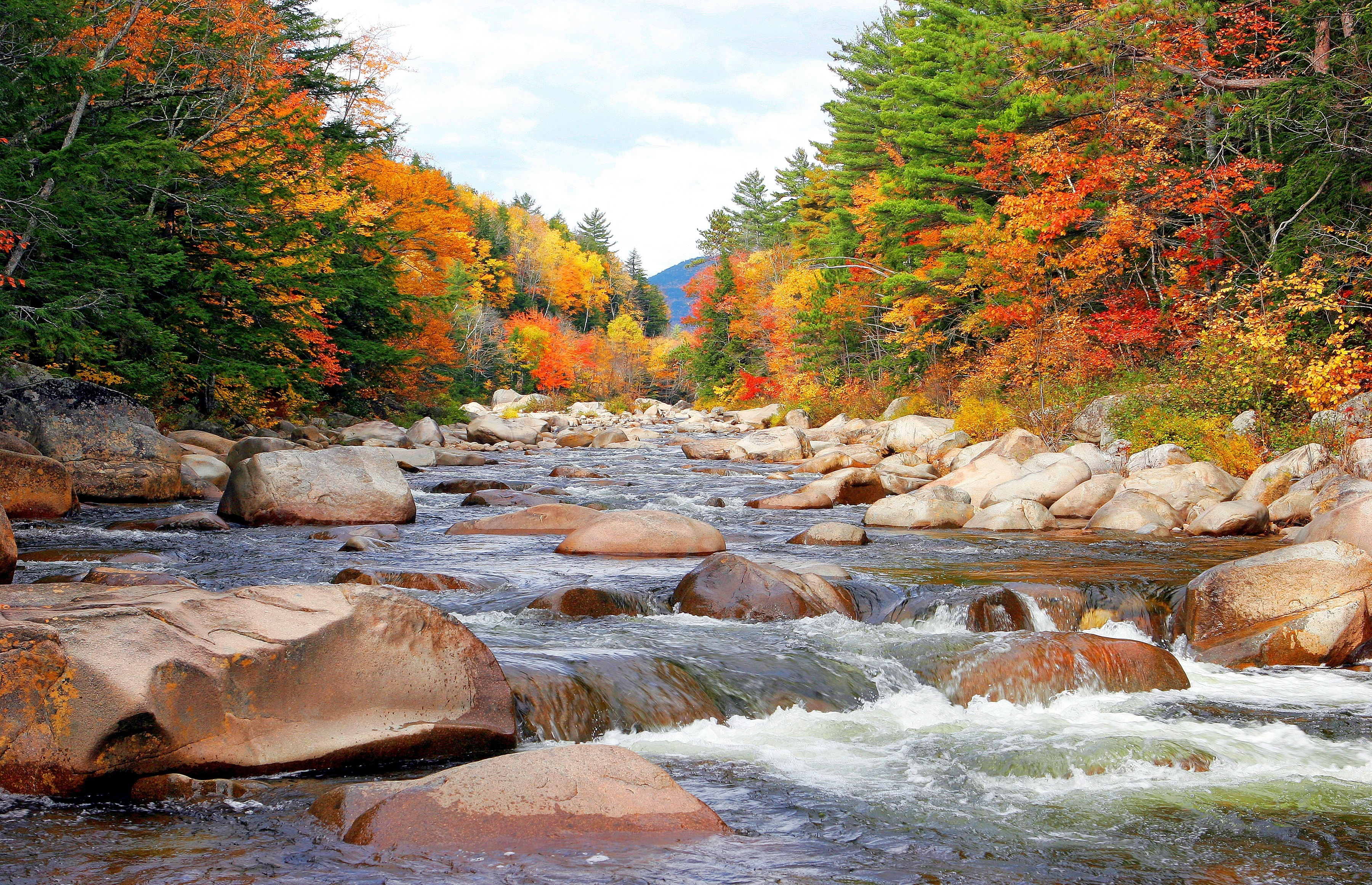 Edytor tapety: Rzeka, Kamienie, Drzewa, Jesień