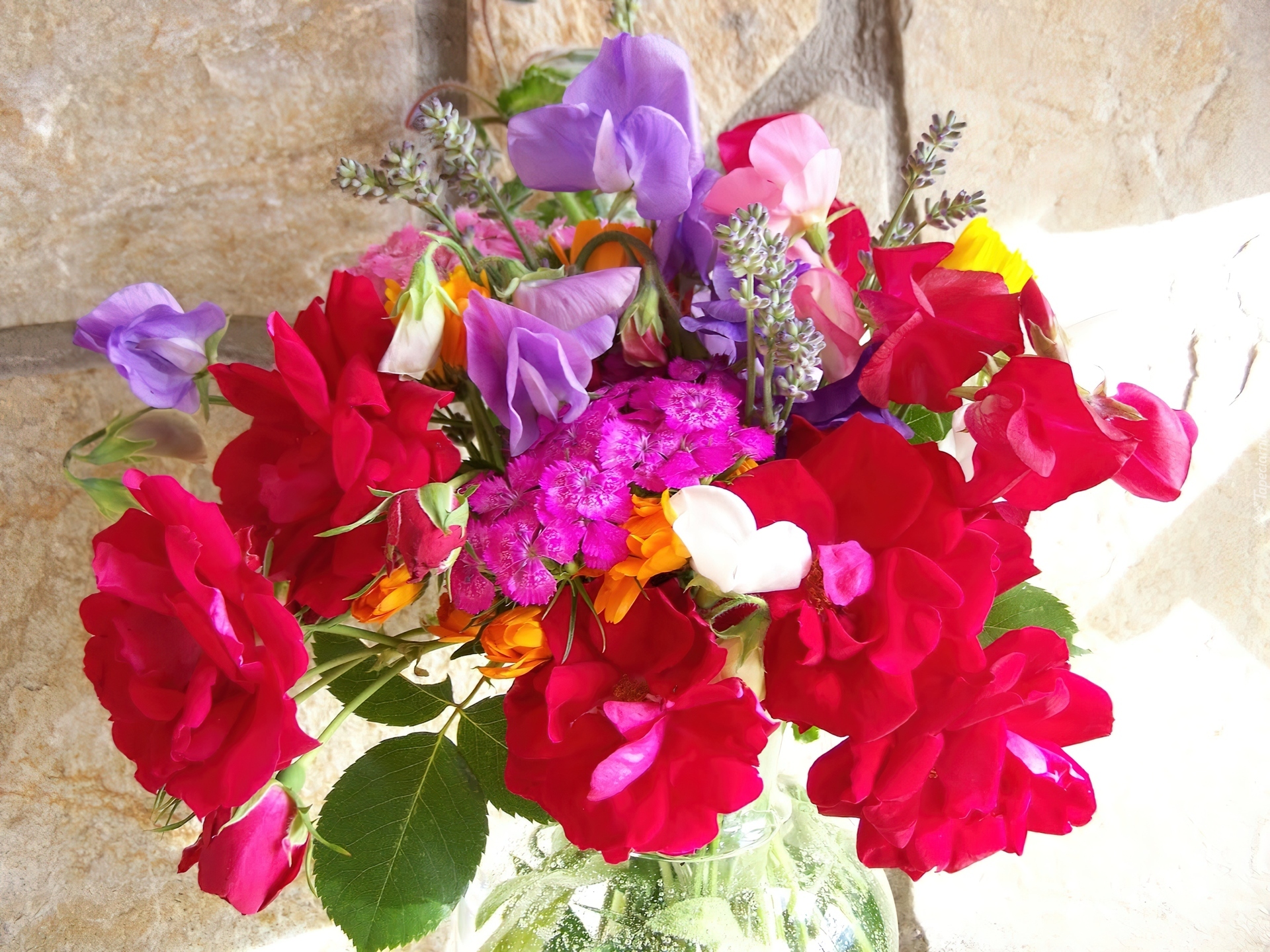 Edytor tapety: Bukiet, Kwiatów, Groszki, Róże
