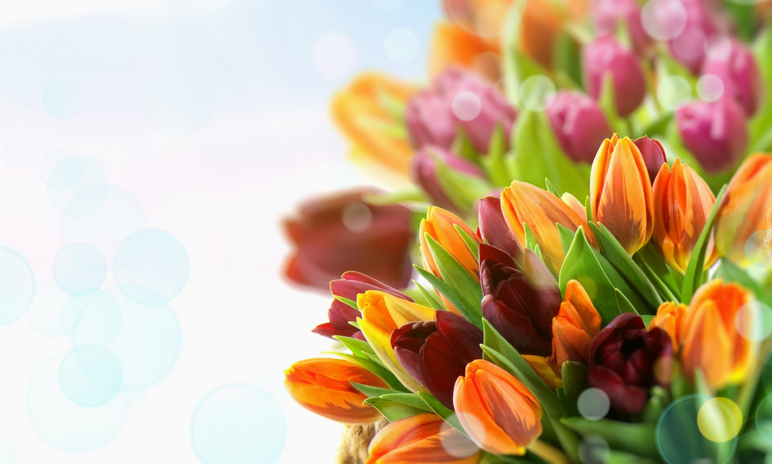 Edytor tapety: Kolorowe, Tulipany, Boke