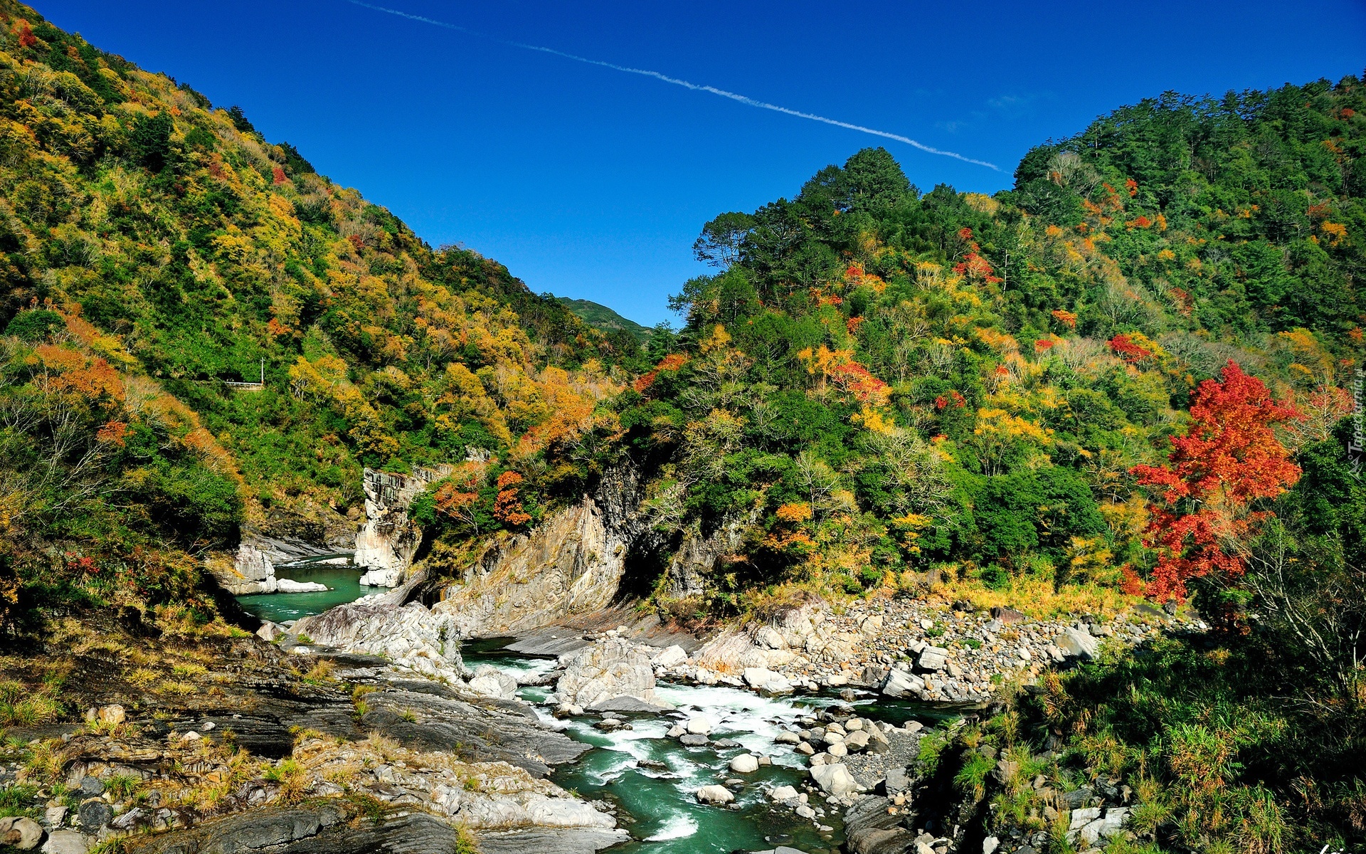 Edytor tapety: Rzeka, Góry, Lasy, Kamienie