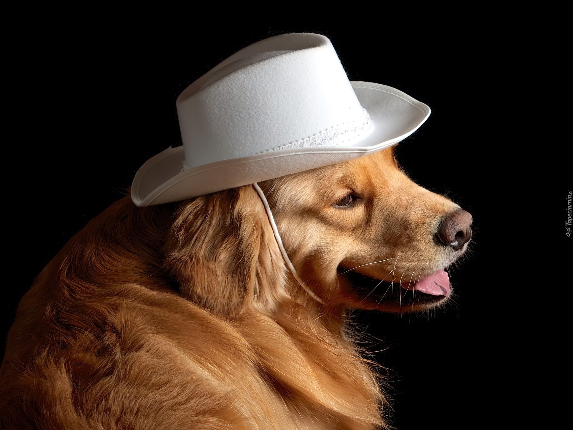 Edytor tapety: Biały, Kapelusz, Pies, Golden Retriever