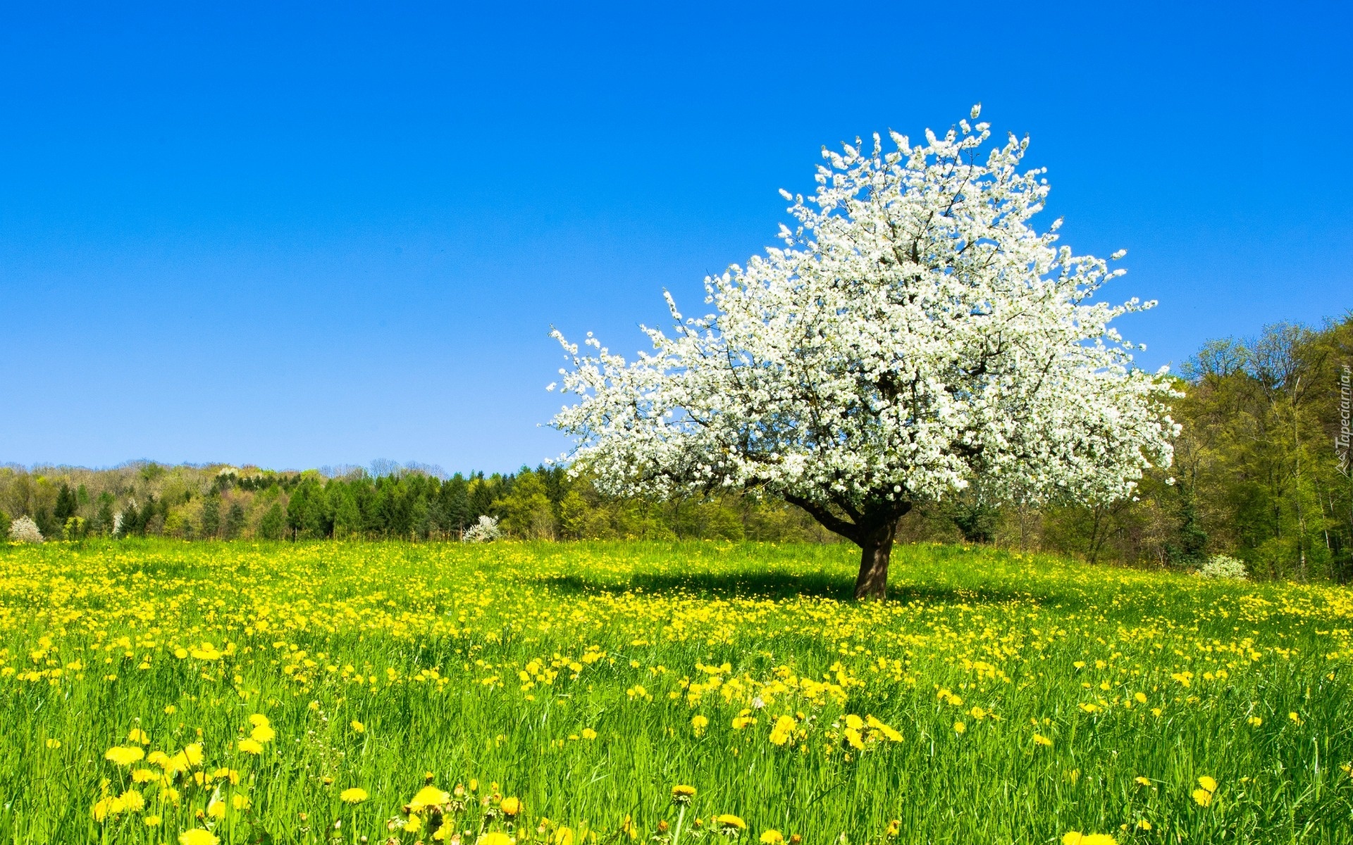 Edytor tapety: Łąka, Kwiat, Drzewo, Las, Wiosna