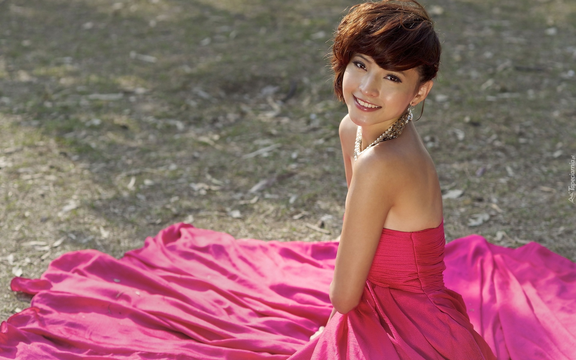Edytor tapety: Agnes Lim, Azjatka, Różowa, Sukienka