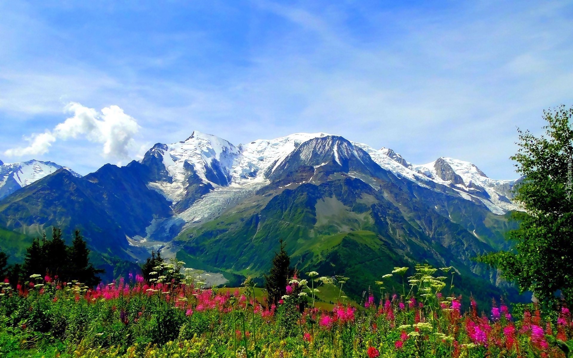 Edytor tapety: Góry, Kwiaty, Zieleń