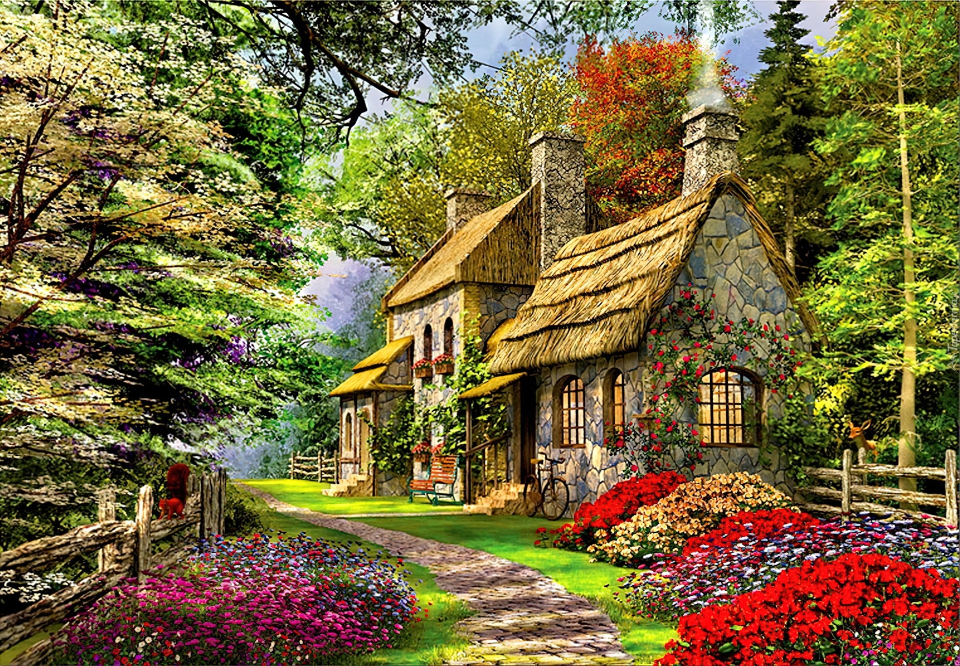 Edytor tapety: Kościół, Alejka, Kwiaty