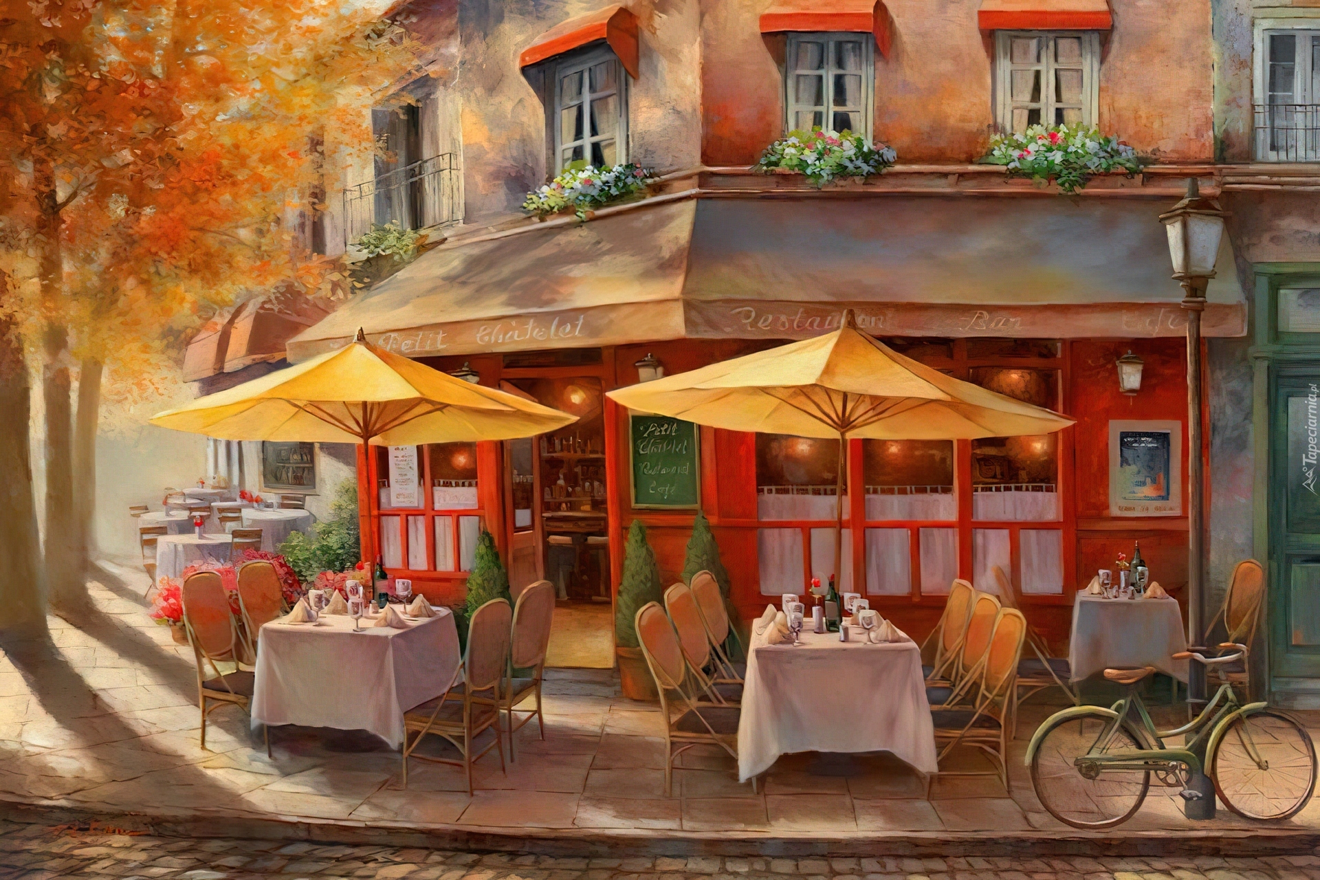 Edytor tapety: Ulica, Domy, Kawiarenka, Stoliki