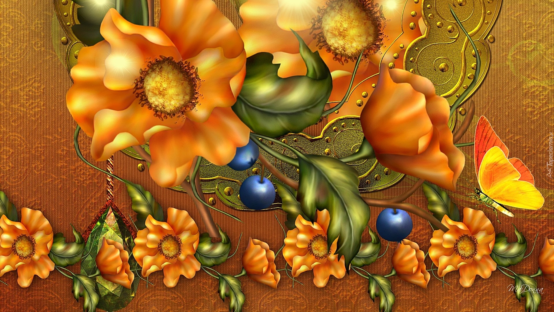 Edytor tapety: Pomarańczowe, Kwiaty, Art