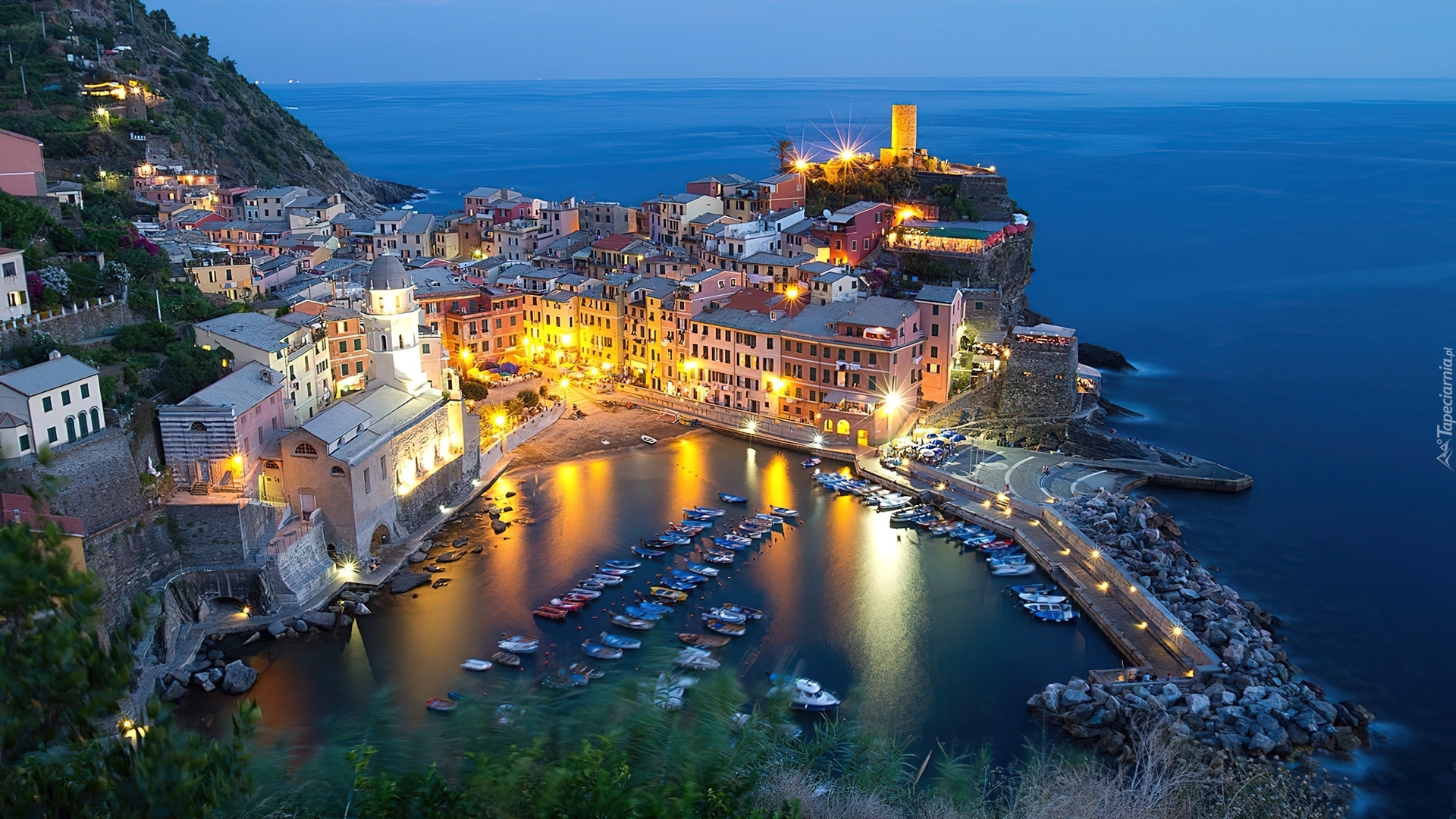 Edytor tapety: Oświetlone, Miasto, Port, Liguria, Włochy