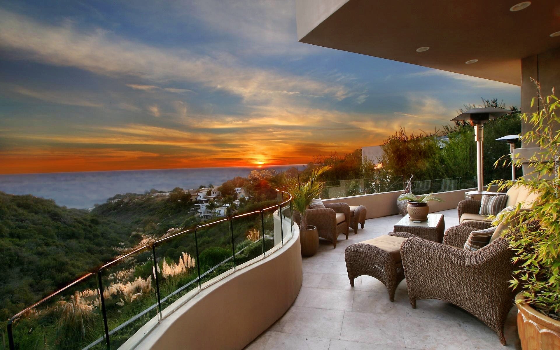 Edytor tapety: Taras, Zachód, Słońca, Widok