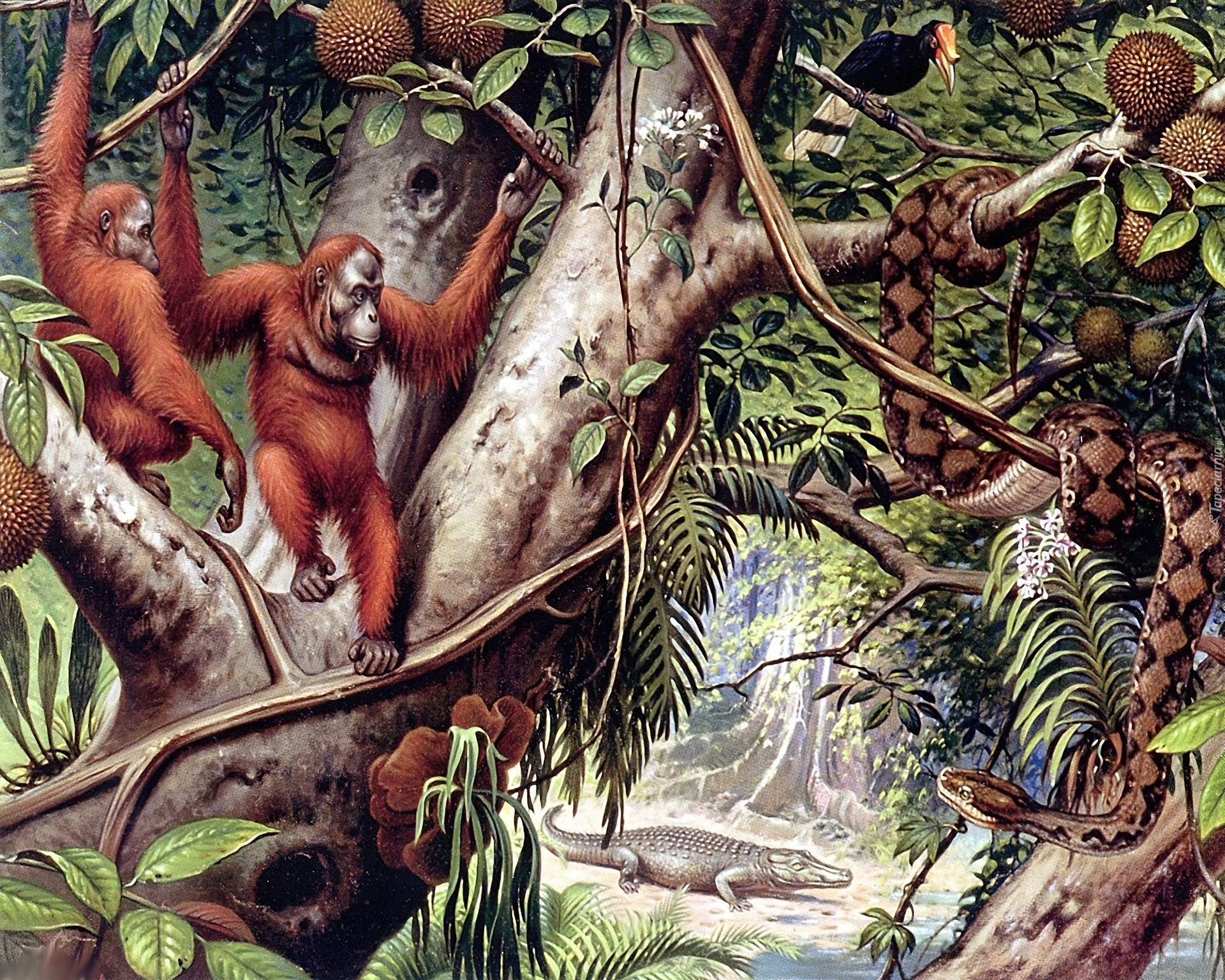 Edytor tapety: Małpy, Orangutany, Dżungla, Liany