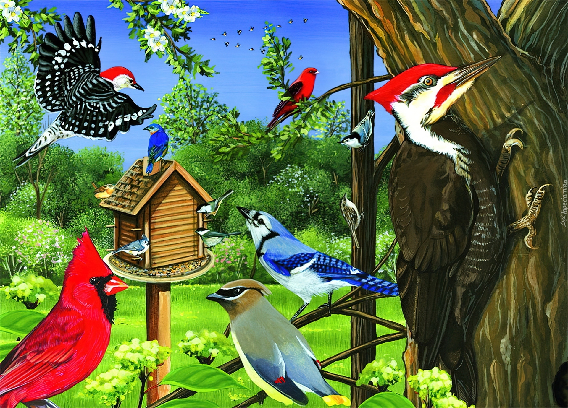 Edytor tapety: Ptaki, Dzięcioł, Kardynał, Karmnik