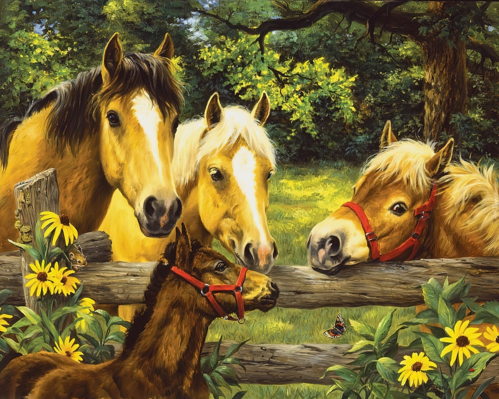 Edytor tapety: Trzy, Konie, Źrebak, Obraz