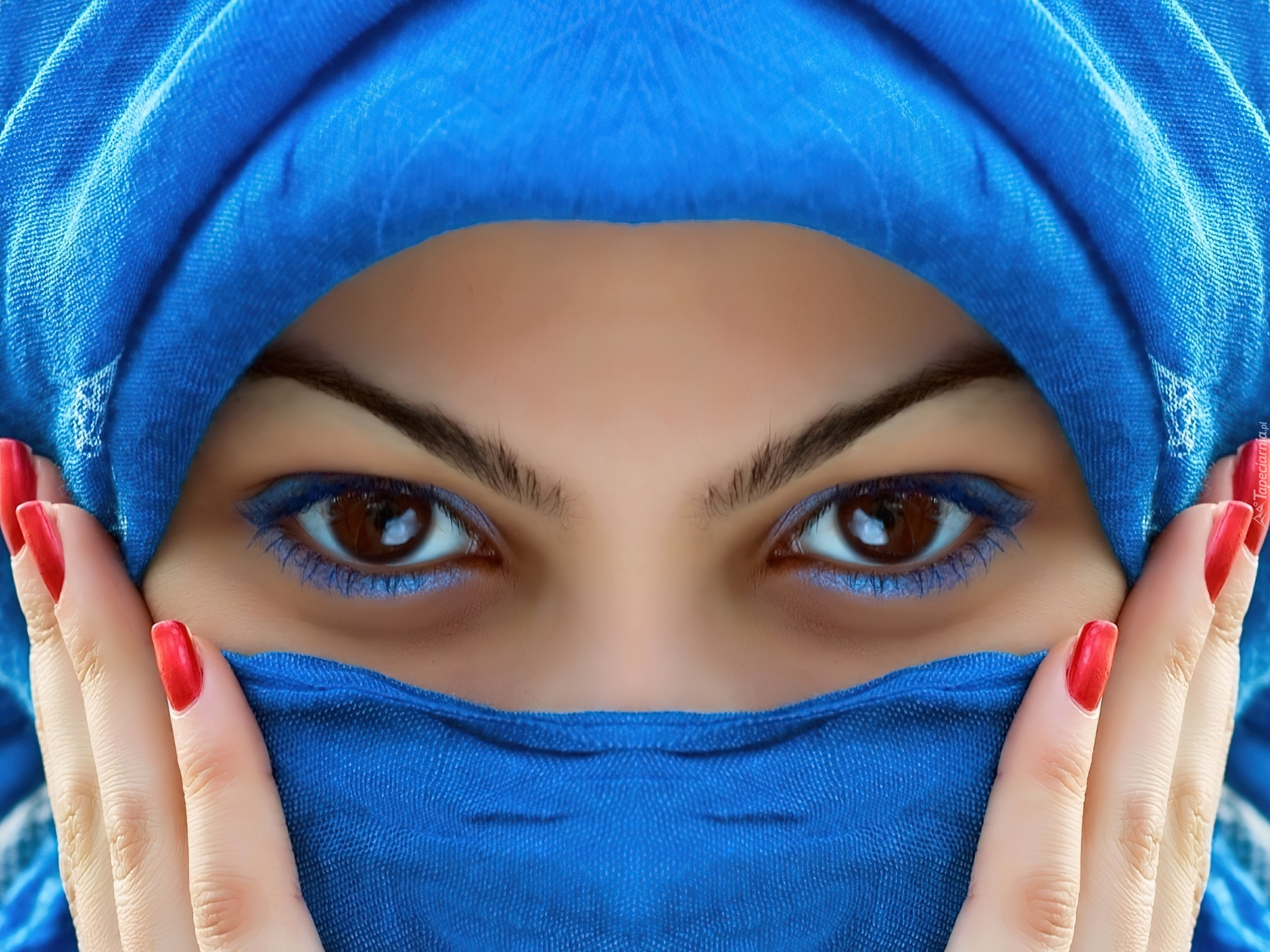Edytor tapety: Kobieta, Makijaż, Dłonie, Szal