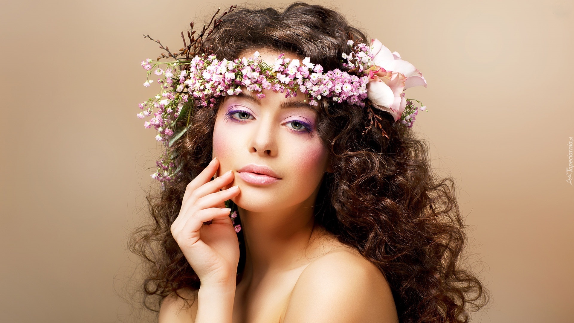 Edytor tapety: Kobieta, Makijaż, Kwiaty, Wianek