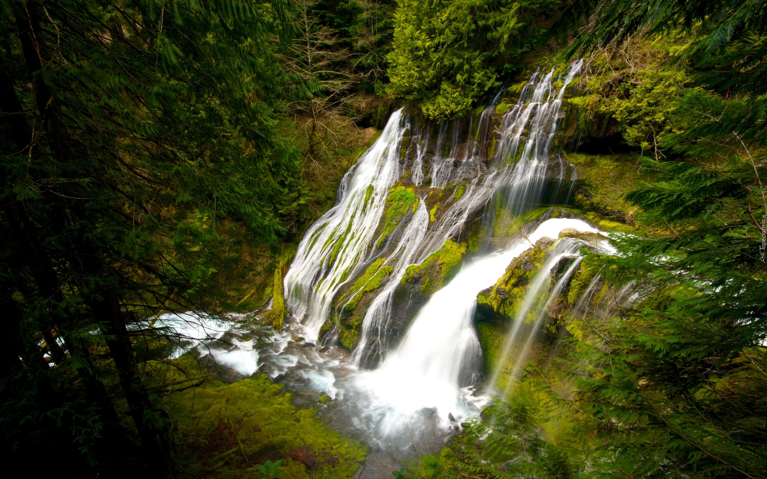 Edytor tapety: Wodospad Panther Creek Falls, Stan Waszyngton, Stany Zjednoczone Las, Drzewa