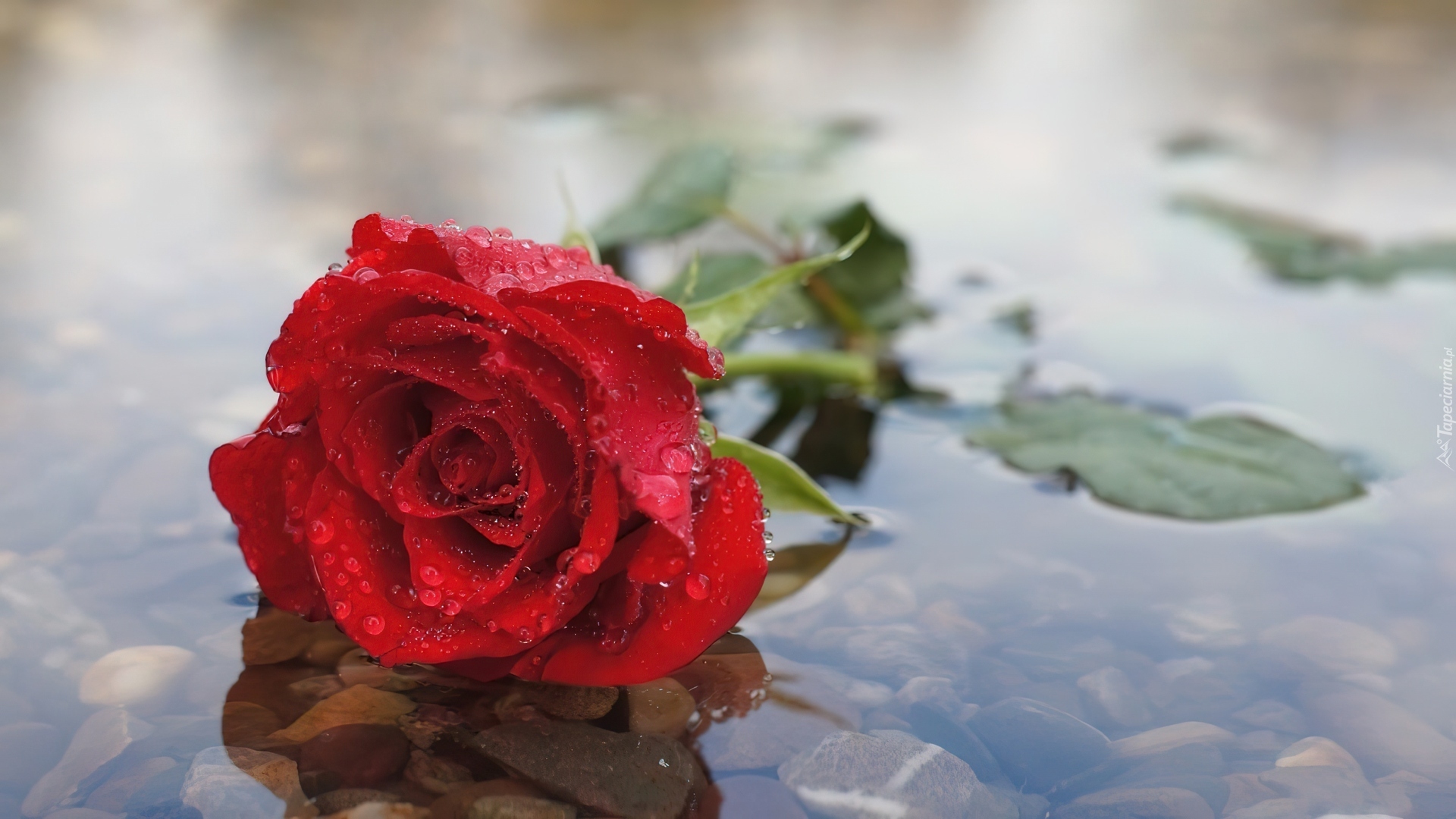 Edytor tapety: Róża, Rzeka, Kamienie